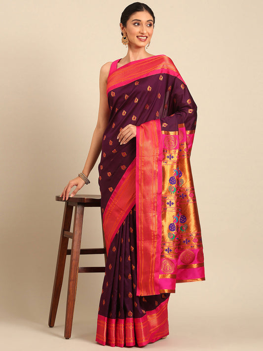 Usha Wine & Pink Soft Silk Maharani Paithani Saree