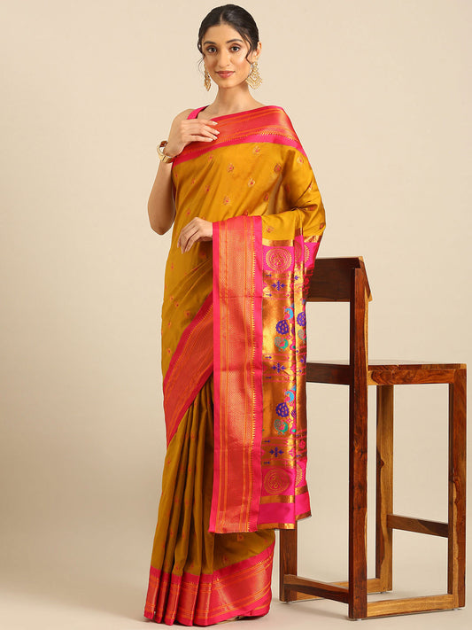 Amruta Haldi & Rama Soft Silk Muniya Paithani Saree