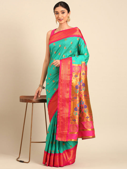 Usha Sea Green & Pink Soft Silk Maharani Paithani Saree