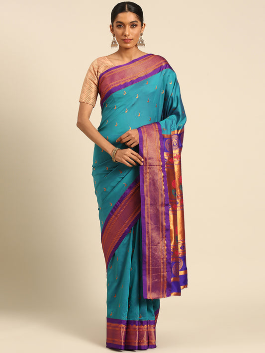 Chandrkala Firozi & Violet Soft Silk Chandrakor Paithani Saree