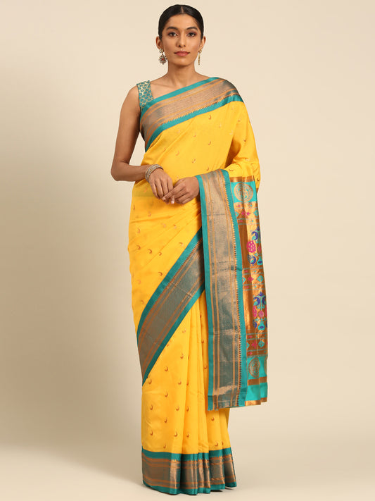 Chandrkala Haldi & Rama Soft Silk Chandrakor Paithani Saree