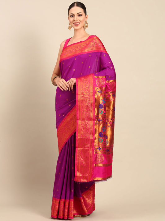 Chandrtara Purple & Pink Soft Silk Chandrakor Paithani Saree
