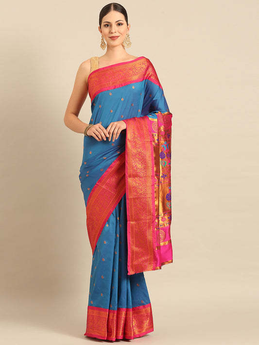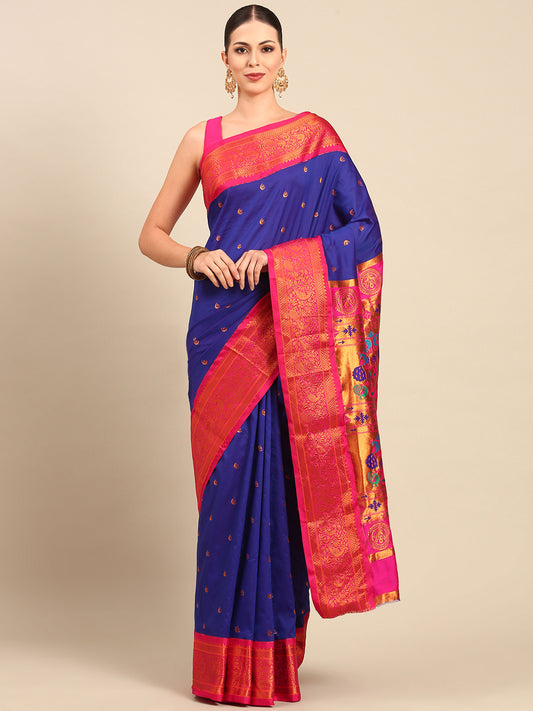 Chandrtara Royal Blue & Pink Soft Silk Chandrakor Paithani Saree