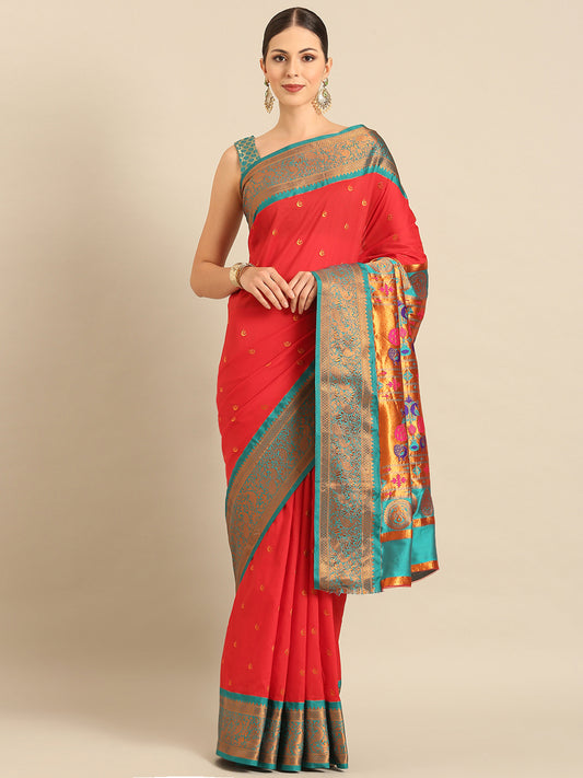 Chandrtara Red & Rama Soft Silk Chandrakor Paithani Saree