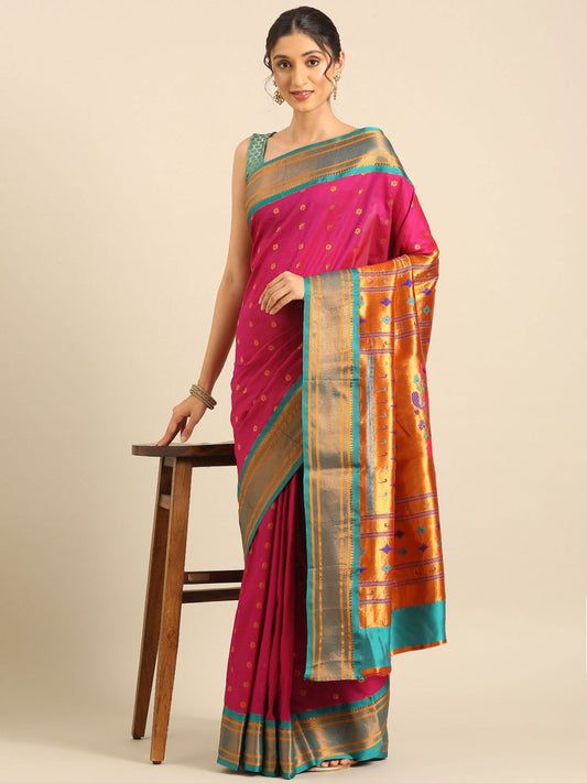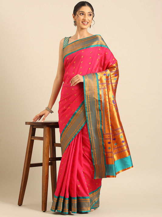 Gopi Hot Pink & Rama Semi Silk Fancy Pallu Paithani Saree