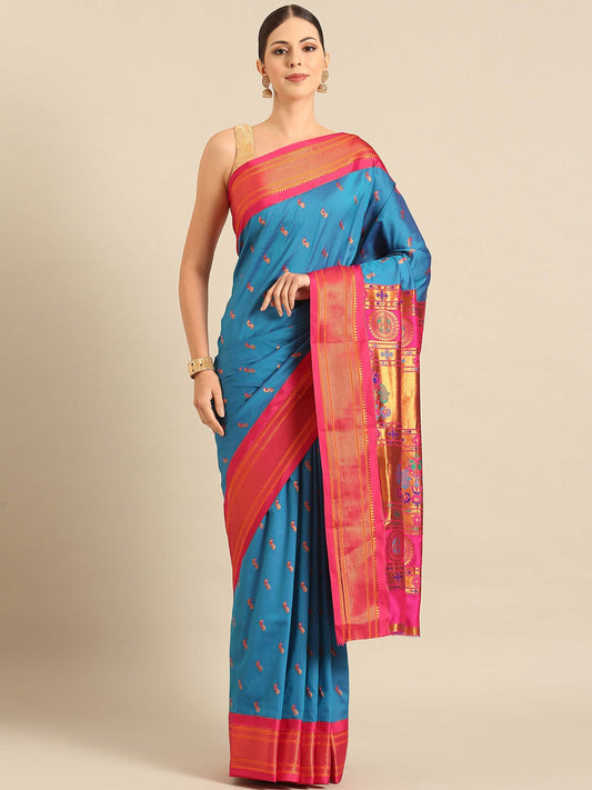 Usha Firozi & Red Soft Silk Maharani Paithani Saree