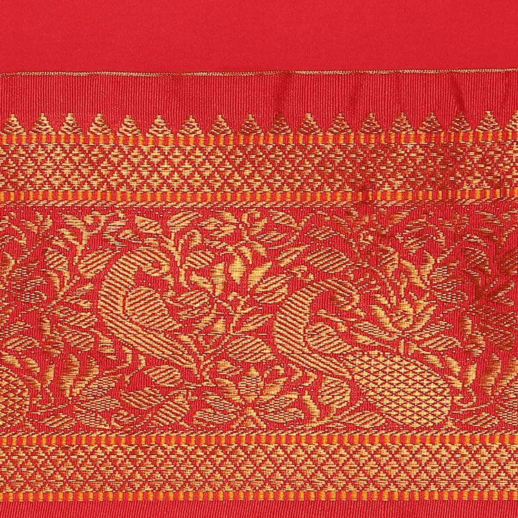 Kanika Mustard & Red Soft Silk Fancy Pallu Kadiyal Paithani Saree