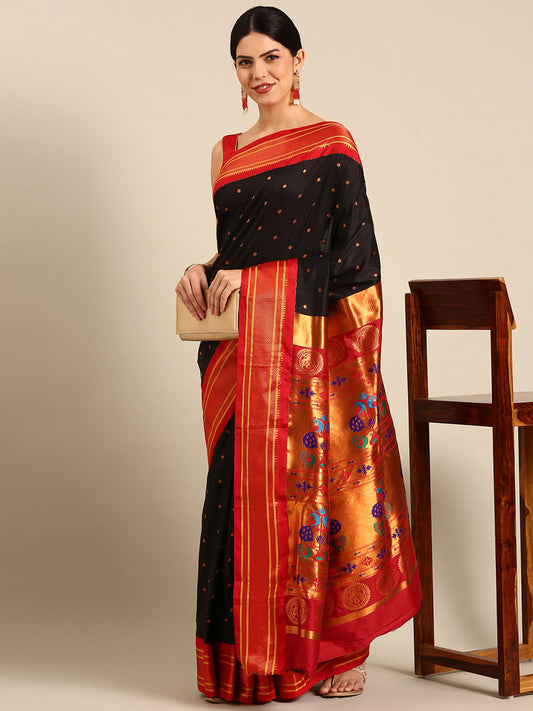 Neha Black & Red Soft Silk Maharani Paithani Saree