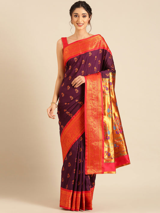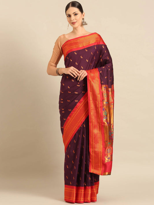 Usha Wine & Red Soft Silk Maharani Paithani Saree