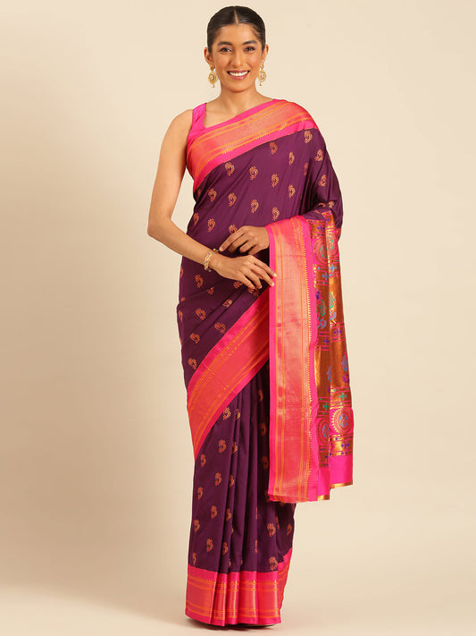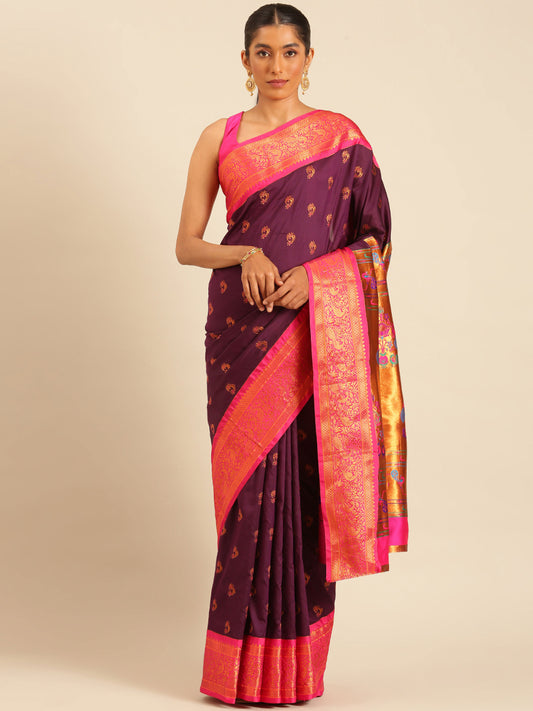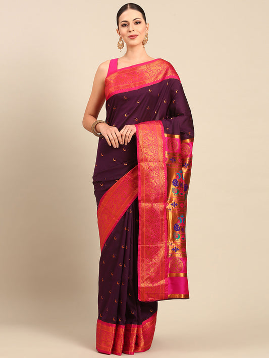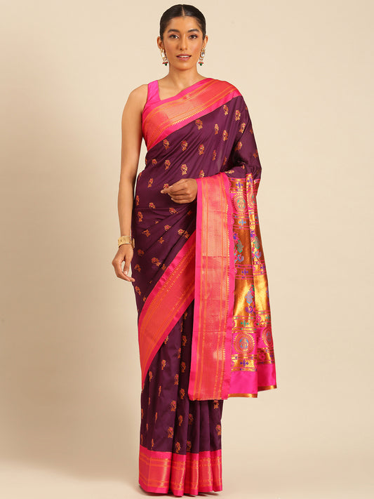 Neha Wine & Pink Soft Silk Maharani Paithani Saree
