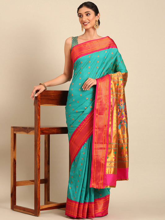 Diksha Sea Green & Red Soft Silk Maharani Paithani Saree