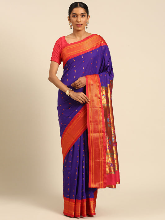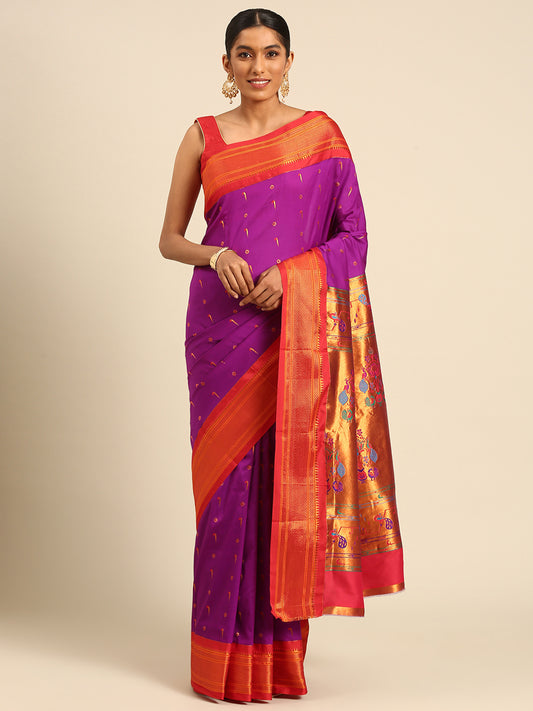 Suruchi Purple & Red Semi Silk Muniya Paithani Saree