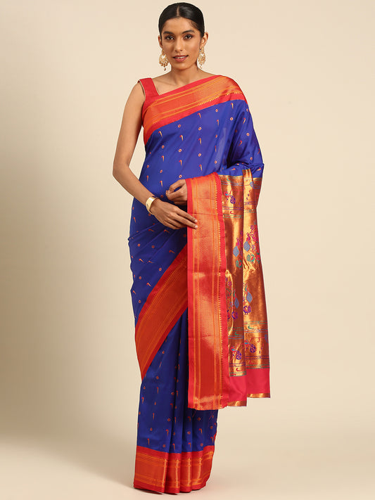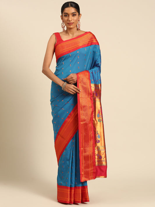 Raksha Royal Blue & Red Semi Silk Double Pallu Paithani Saree
