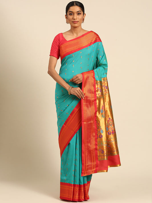 Diksha Sea Green & Red Semi Silk Maharani Paithani Saree