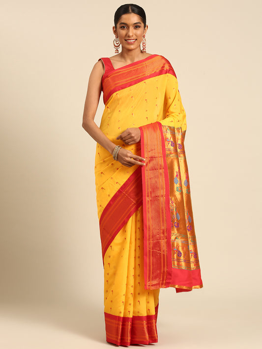 Suruchi Haldi & Red Semi Silk Muniya Paithani Saree