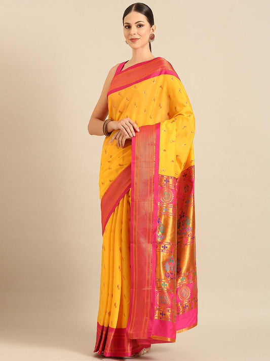 Chandrtara Haldi & Pink Semi Silk Chandrakor Paithani Saree