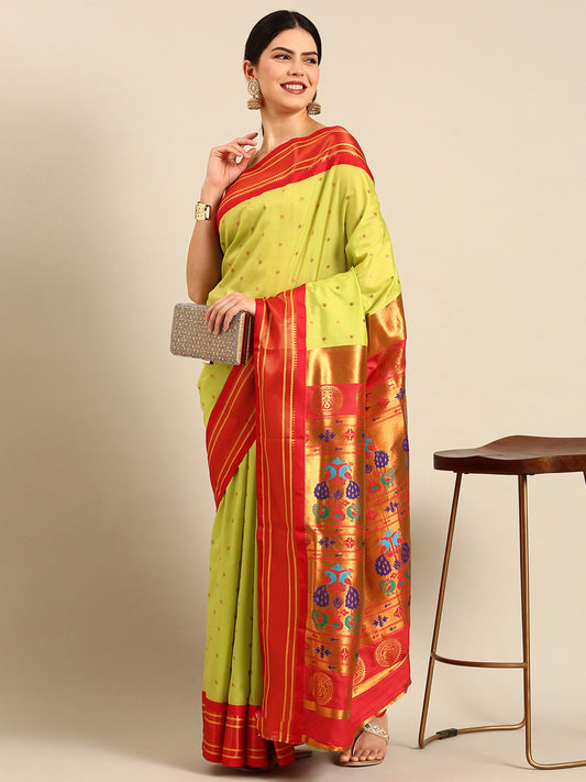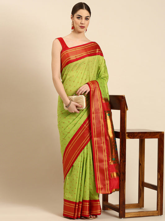 Raksha Parrot Green & Red Soft Silk Double Pallu Paithani Saree