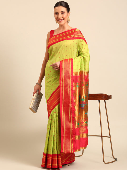 Neha Parrot Green & Red Soft Silk Maharani Paithani Saree
