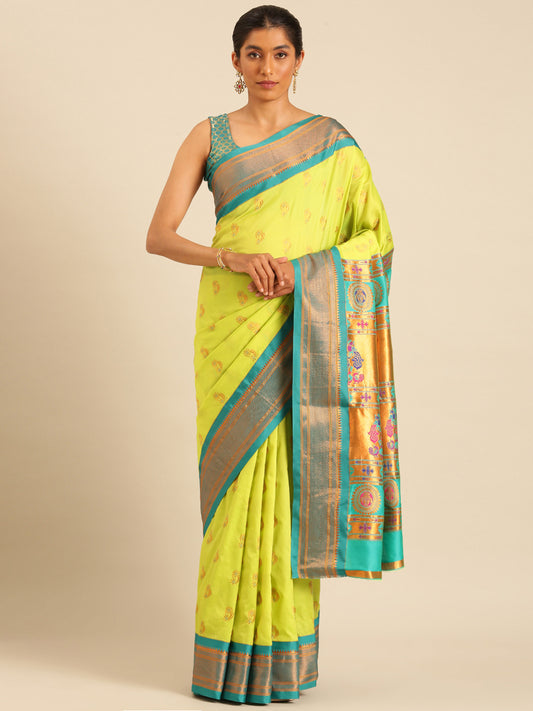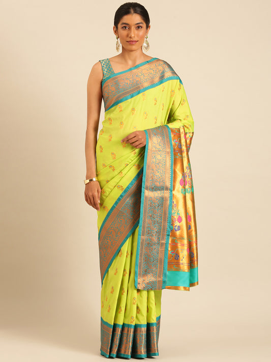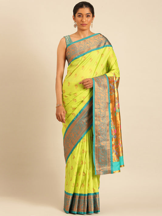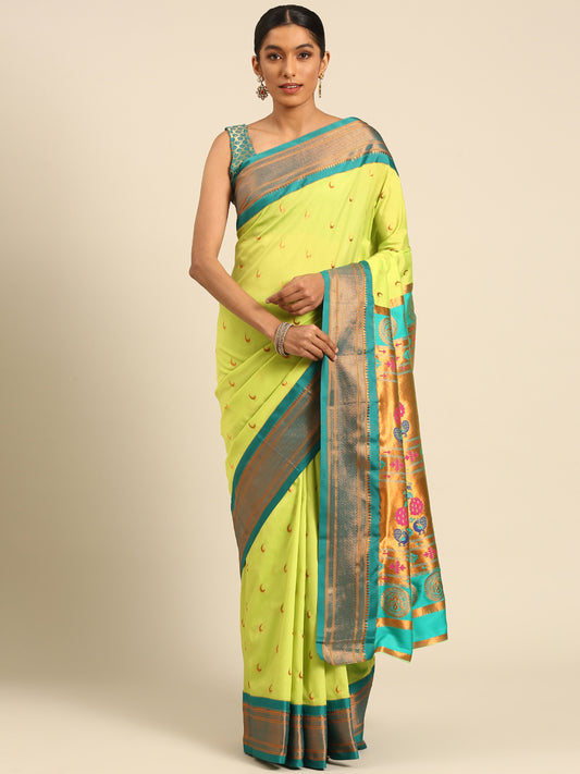 Neha Parrot Green & Rama Soft Silk Maharani Paithani Saree