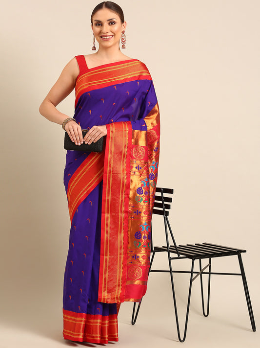 Usha Royal Blue & Red Soft Silk Maharani Paithani Saree