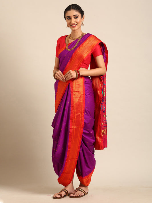 Swamini Purple & Red Soft Silk Maharani Nauvari Paithani Saree