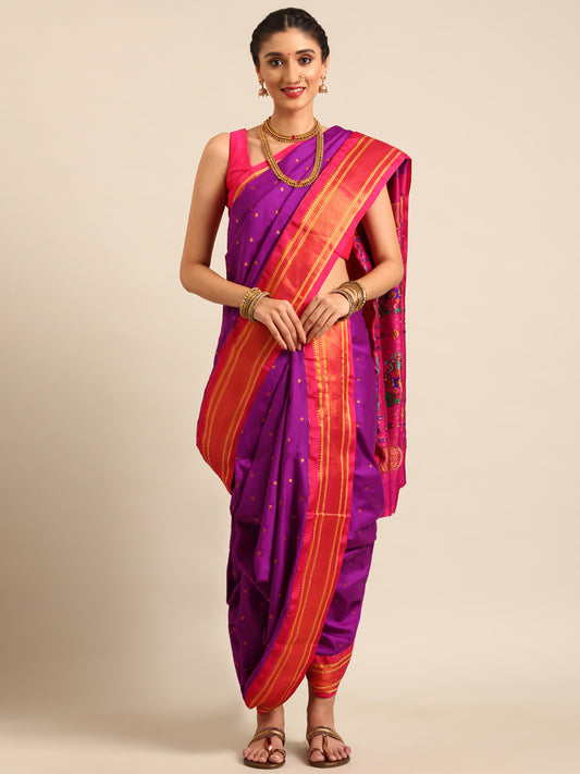 Swamini Purple & Pink Soft Silk Maharani Nauvari Paithani Saree