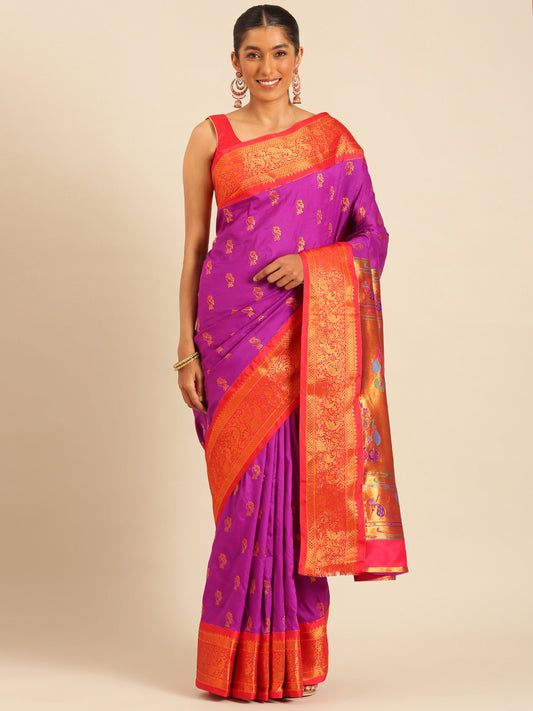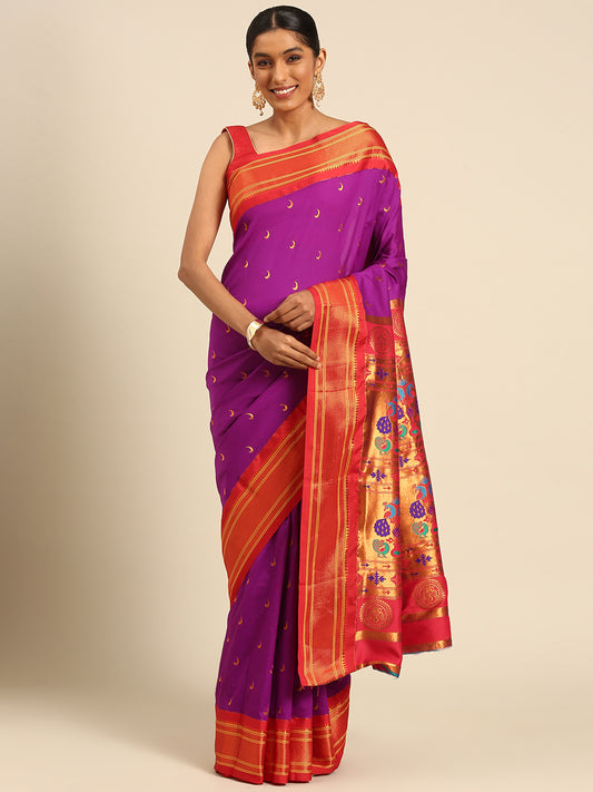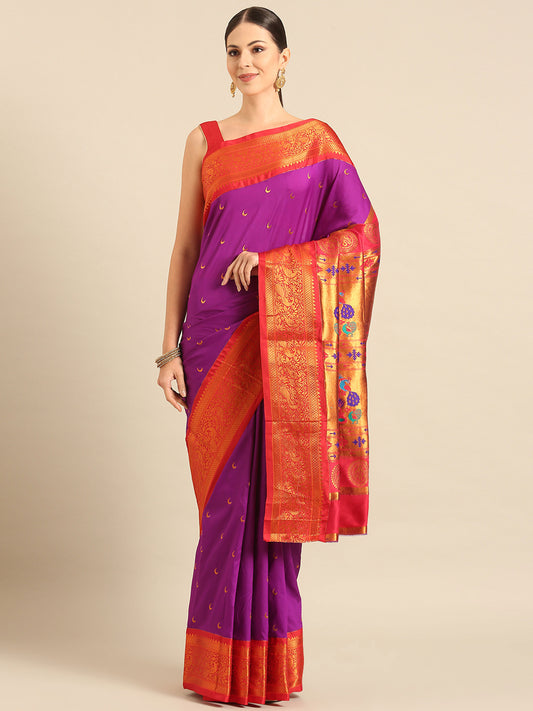 Myra Purple & Red Soft Silk Kadiyal Maharani Paithani Saree