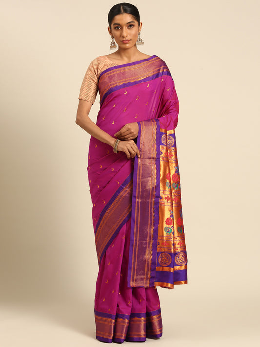 Myra Purple & Pink Soft Silk Kadiyal Maharani Paithani Saree