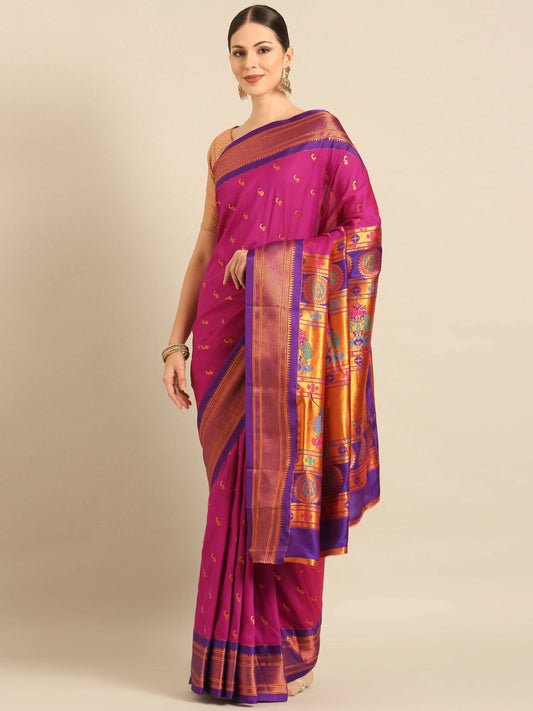 Myra Magenta & Violet Soft Silk Kadiyal Maharani Paithani Saree