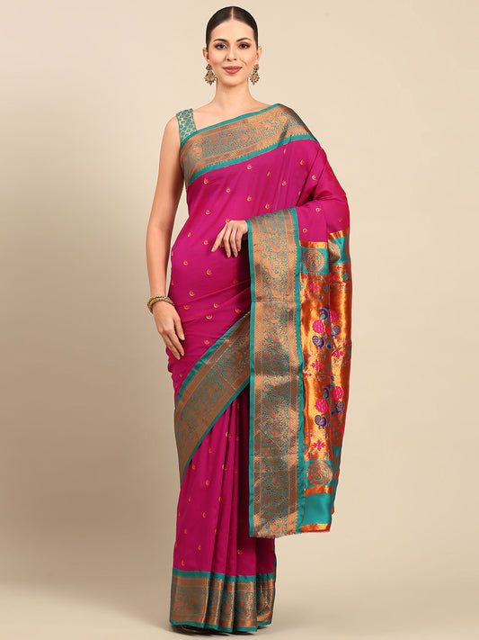 Myra Magenta & Rama Soft Silk Kadiyal Maharani Paithani Saree