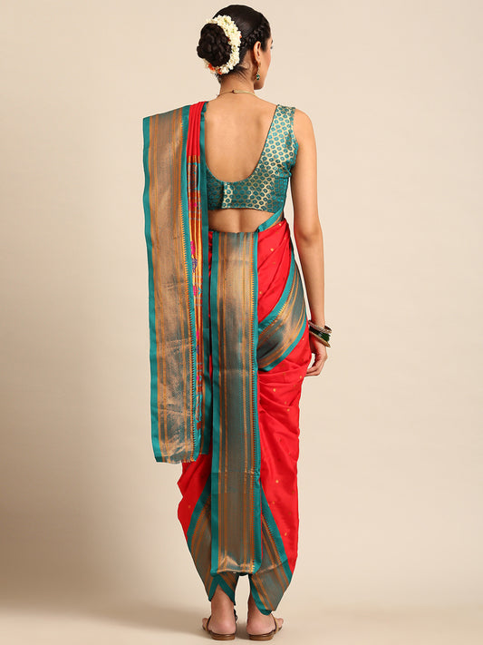 Maharani Nauvari Paithani Saree 9-Yard Silk Blend Traditional Marathi Kashta Saree | Swamini Red & Rama