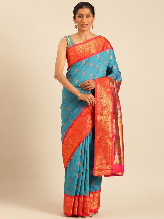Amruta Firozi & Red Soft Silk Muniya Paithani Saree