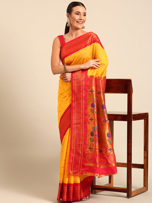 Diksha Gold & Red Soft Silk Maharani Paithani Saree