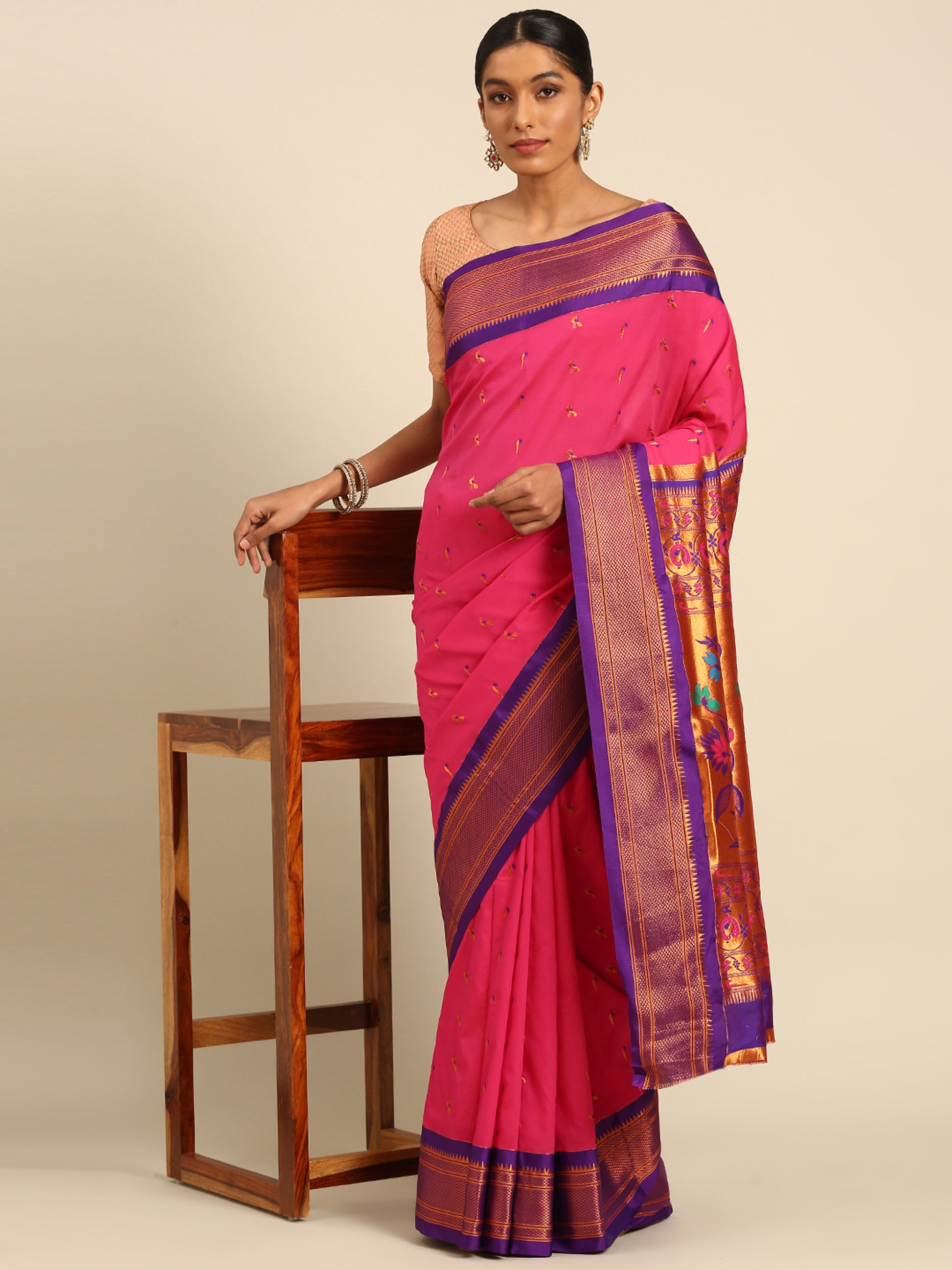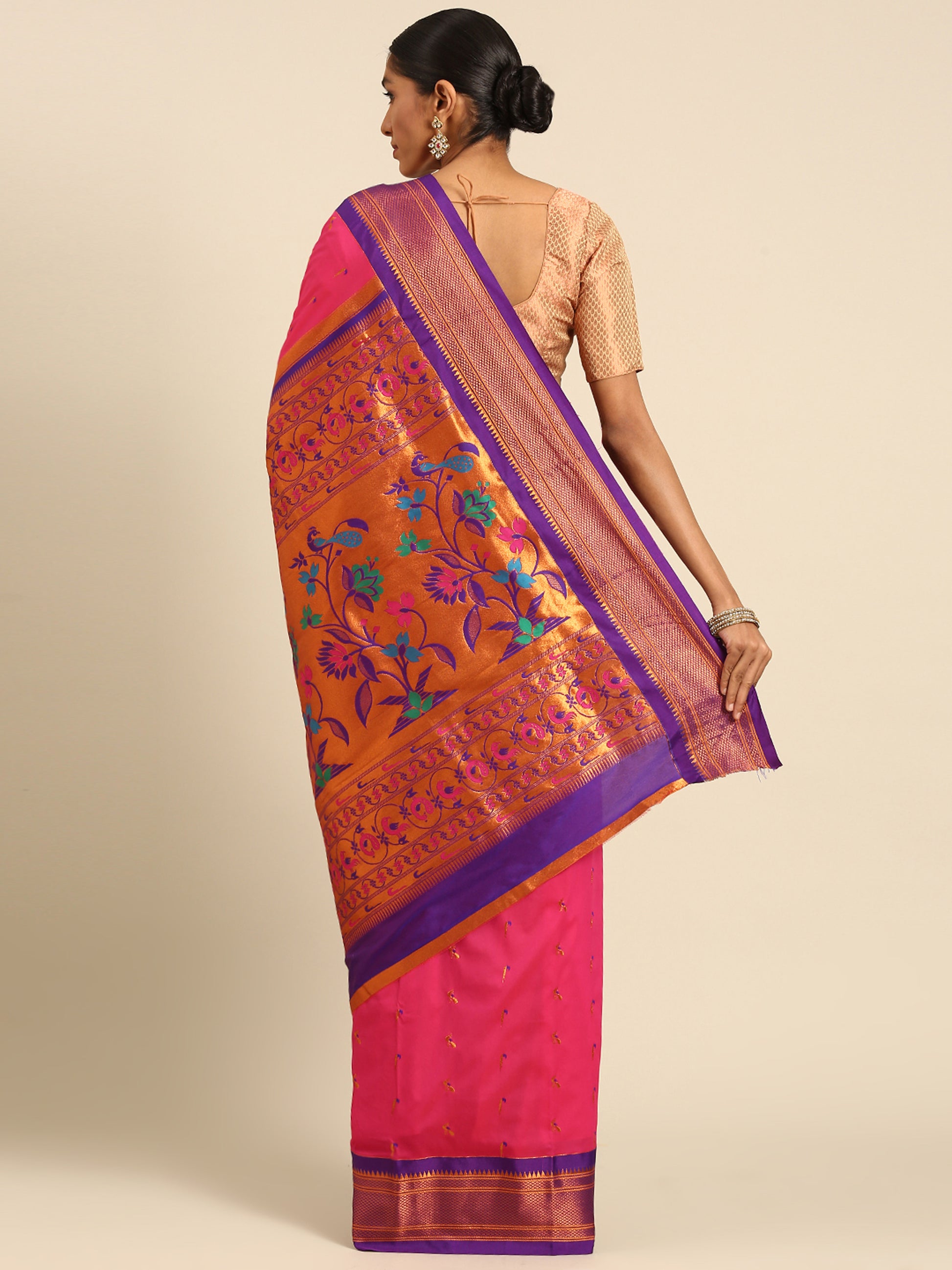 Aarushi Hot Pink & Violet Soft Silk Muniya Paithani Saree