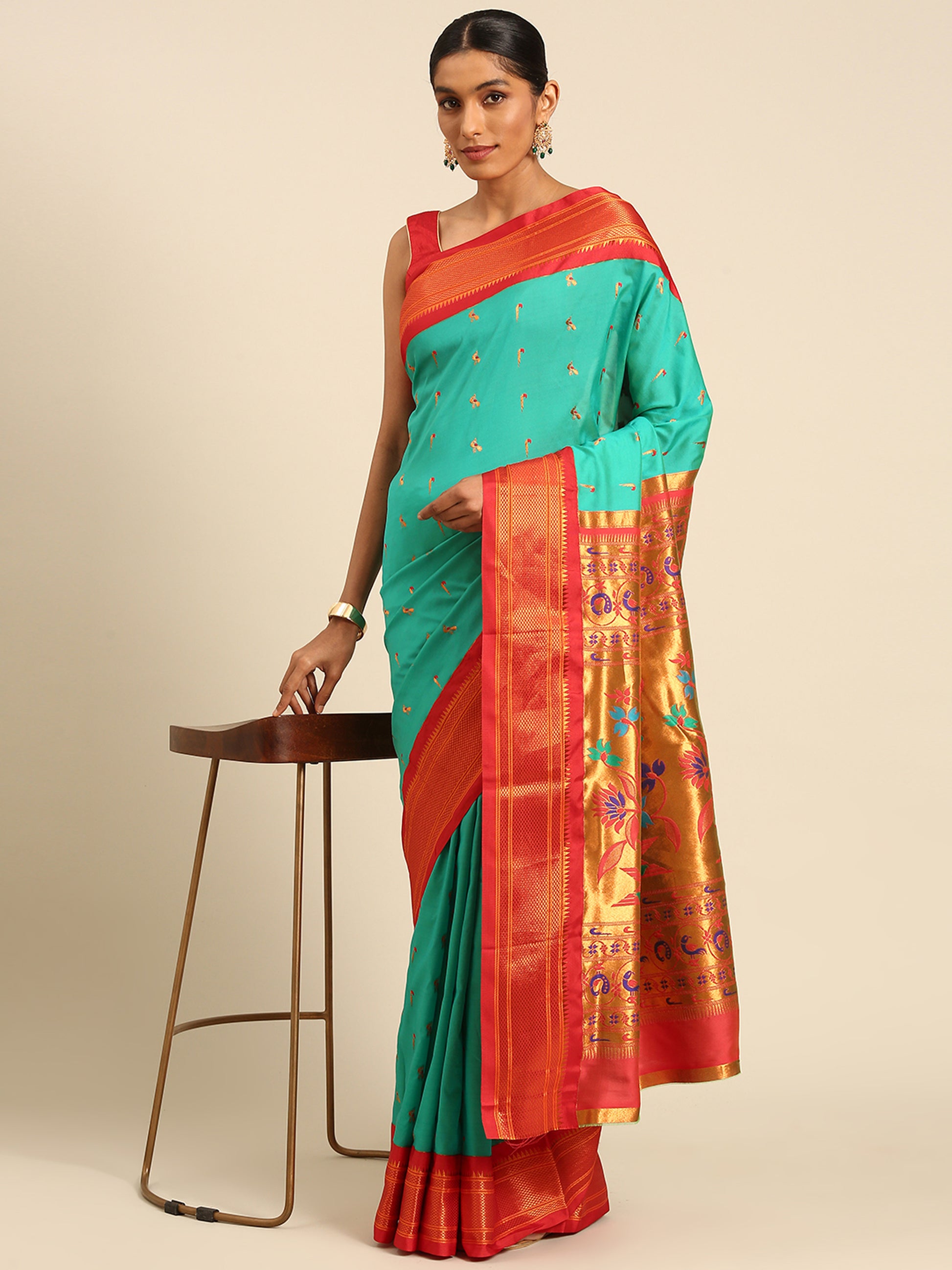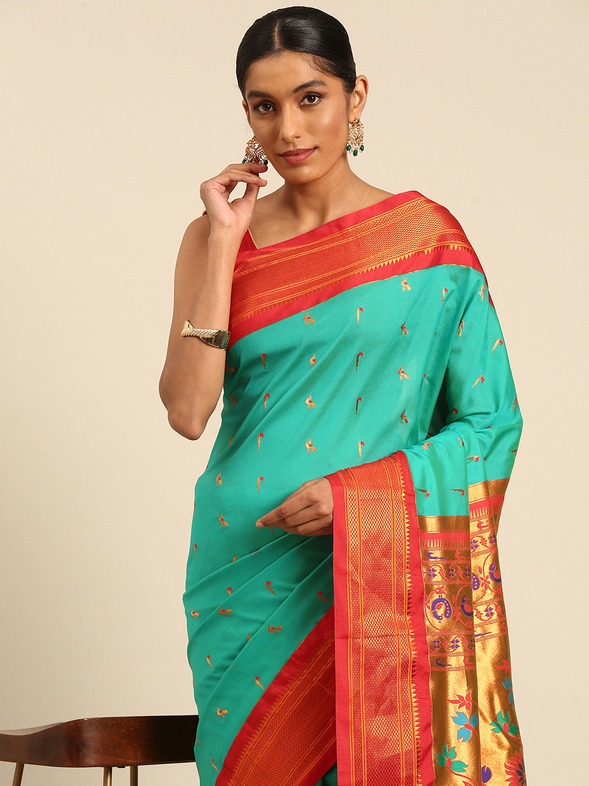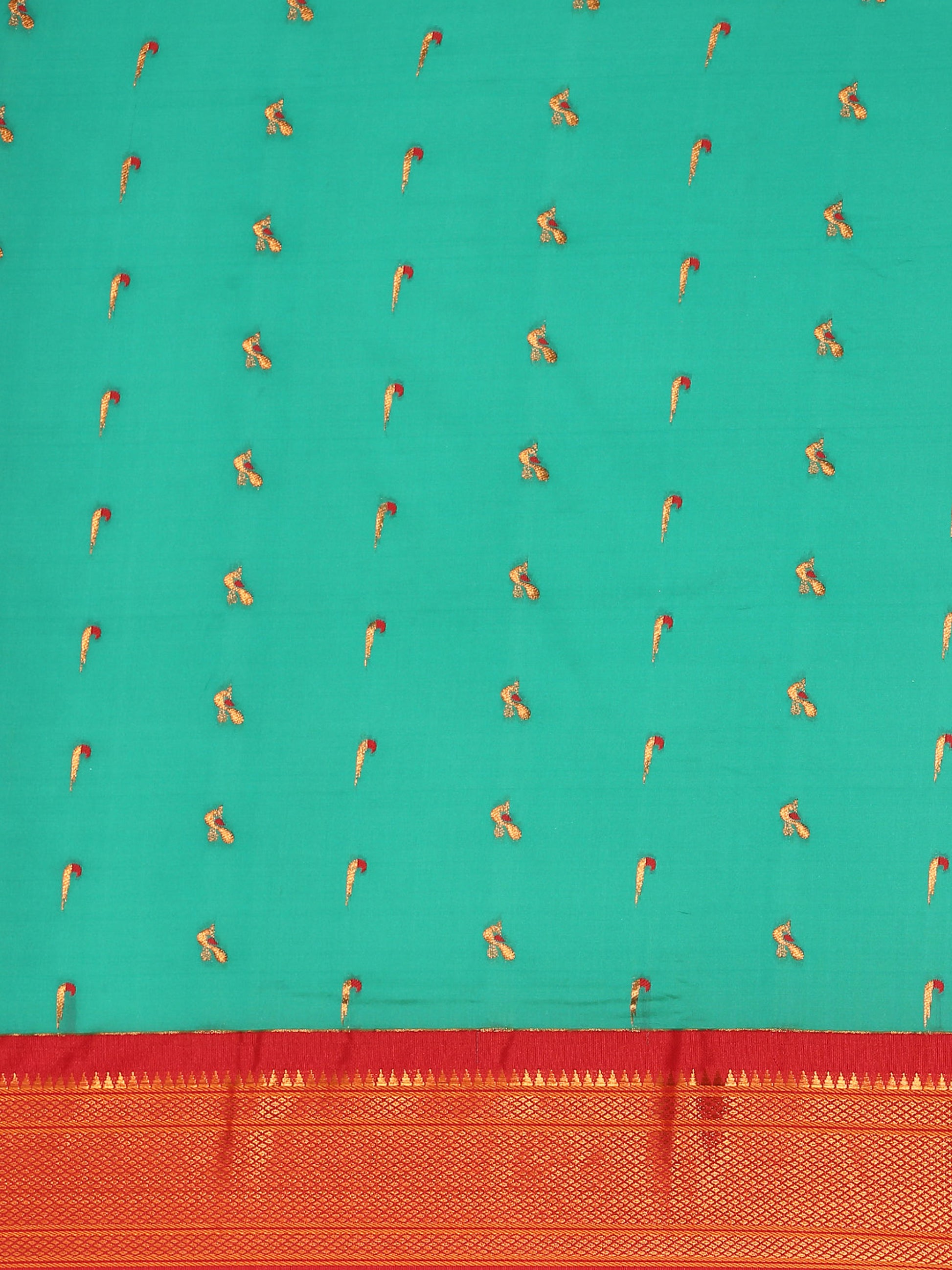 Aarushi Sea Green & Red Soft Silk Muniya Paithani Saree