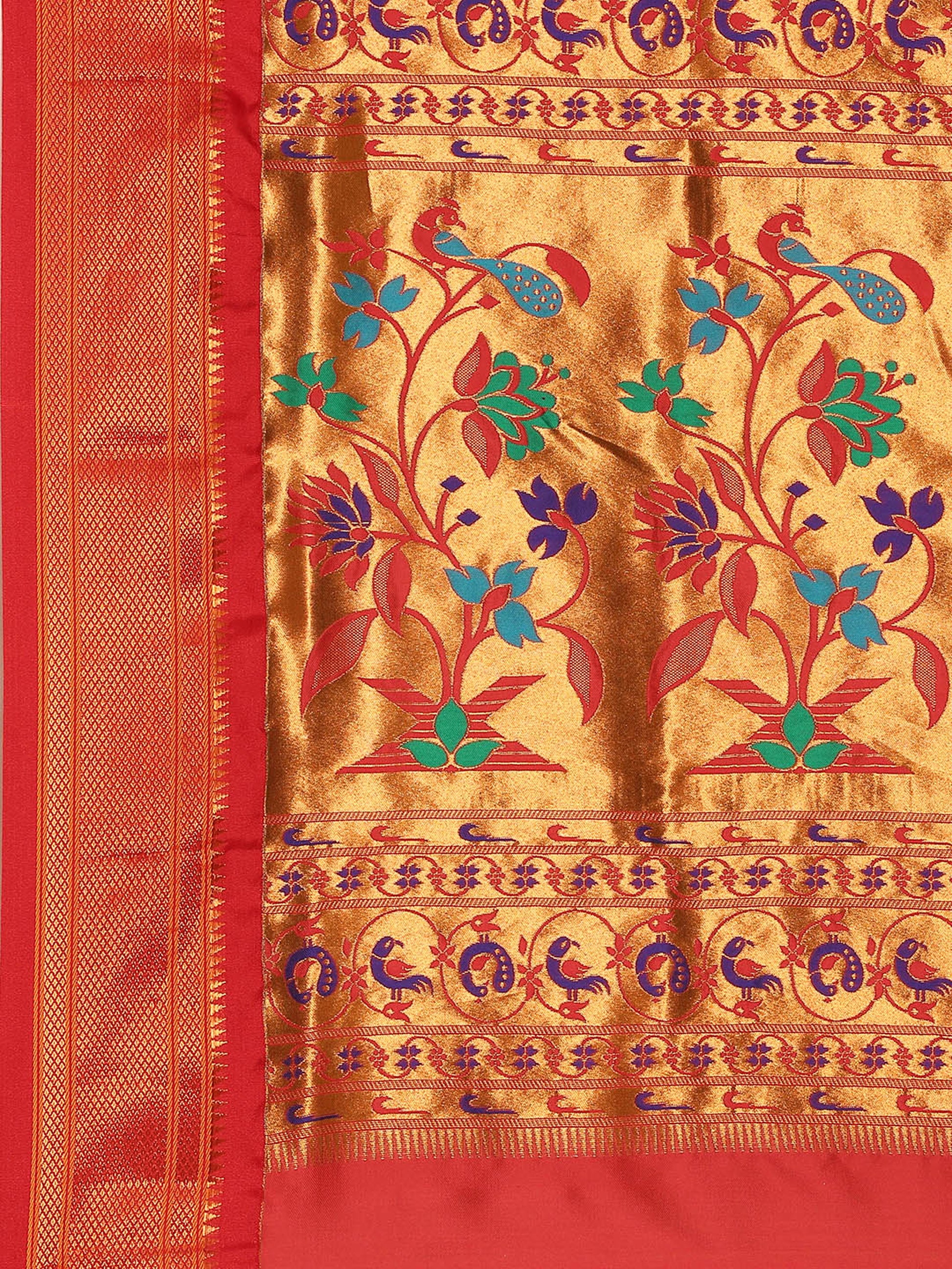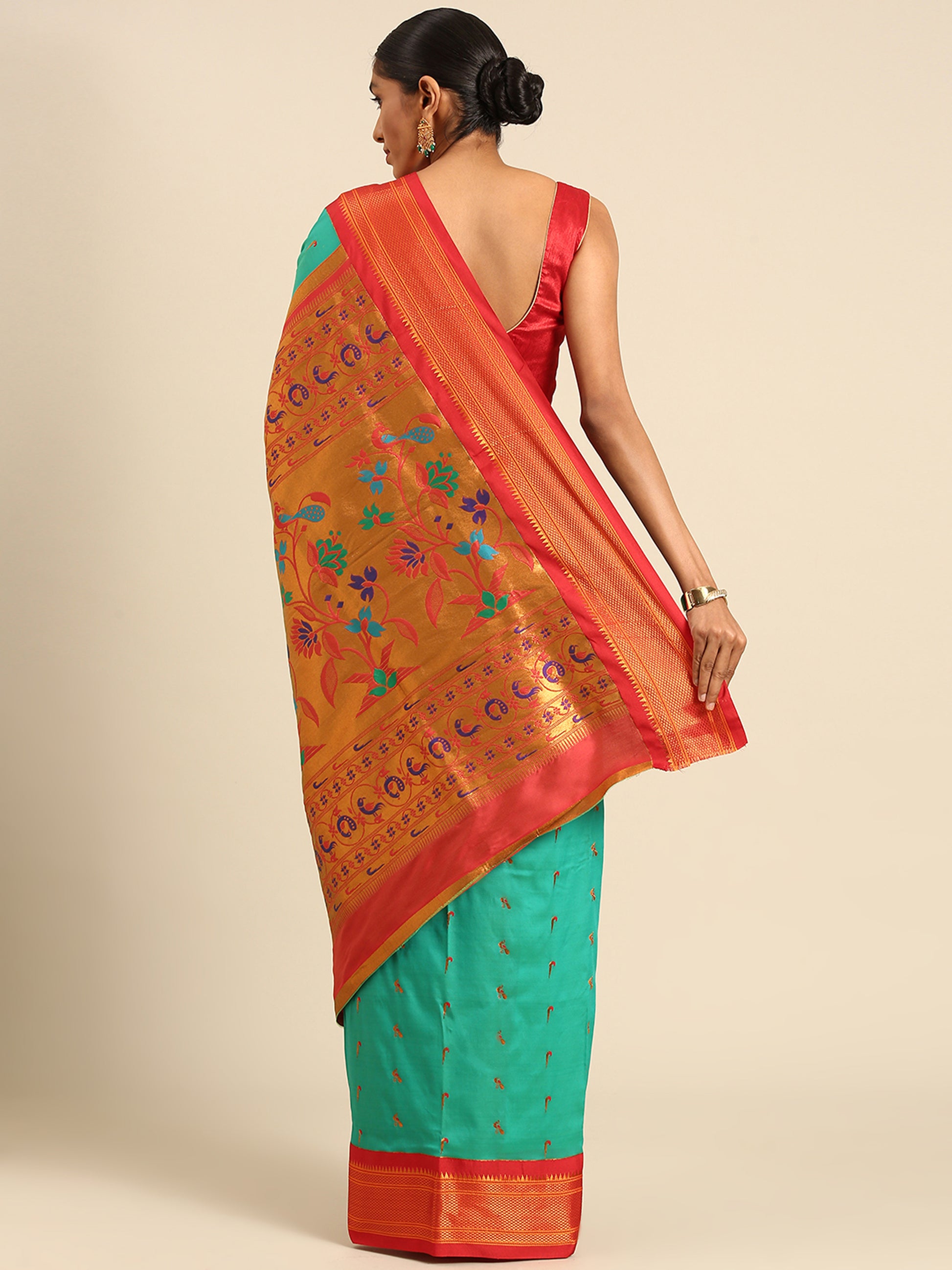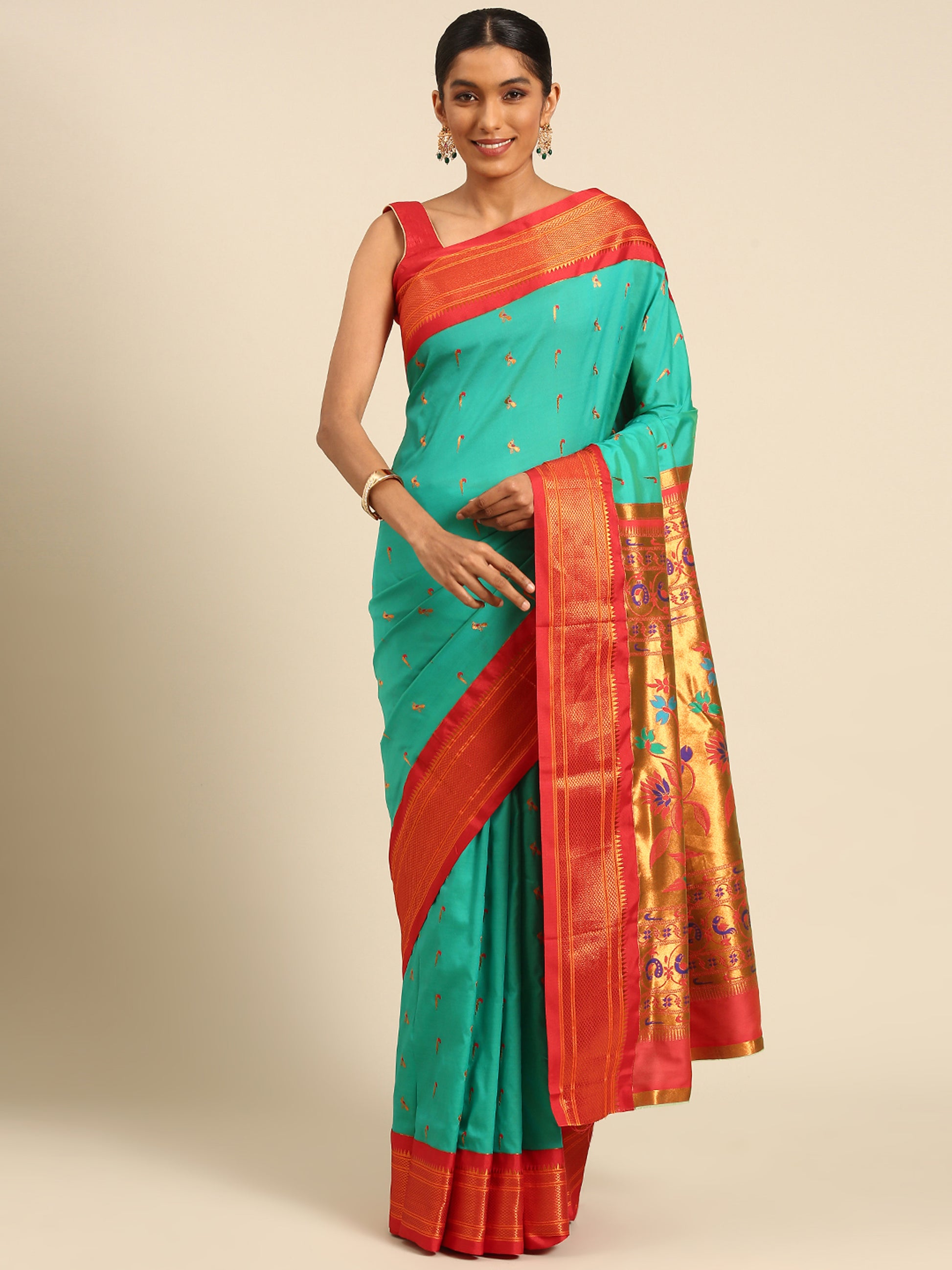 Aarushi Sea Green & Red Soft Silk Muniya Paithani Saree