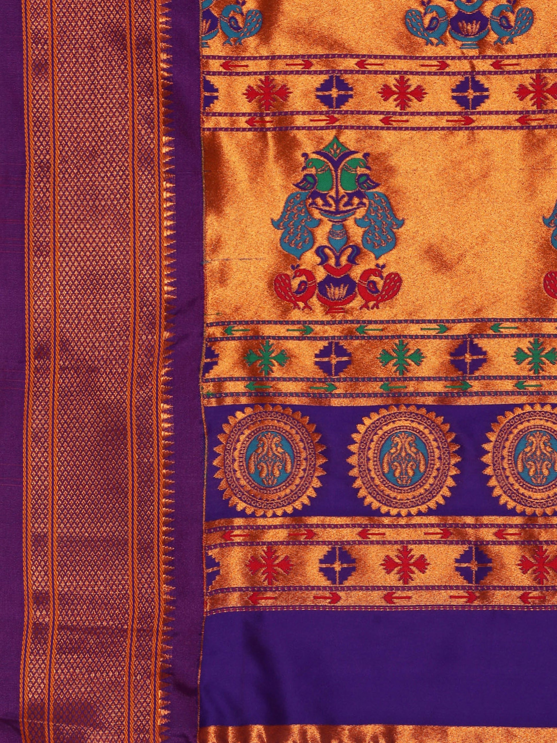 - Pallu Work Type: Copper Zari Woven Peacock Motifs