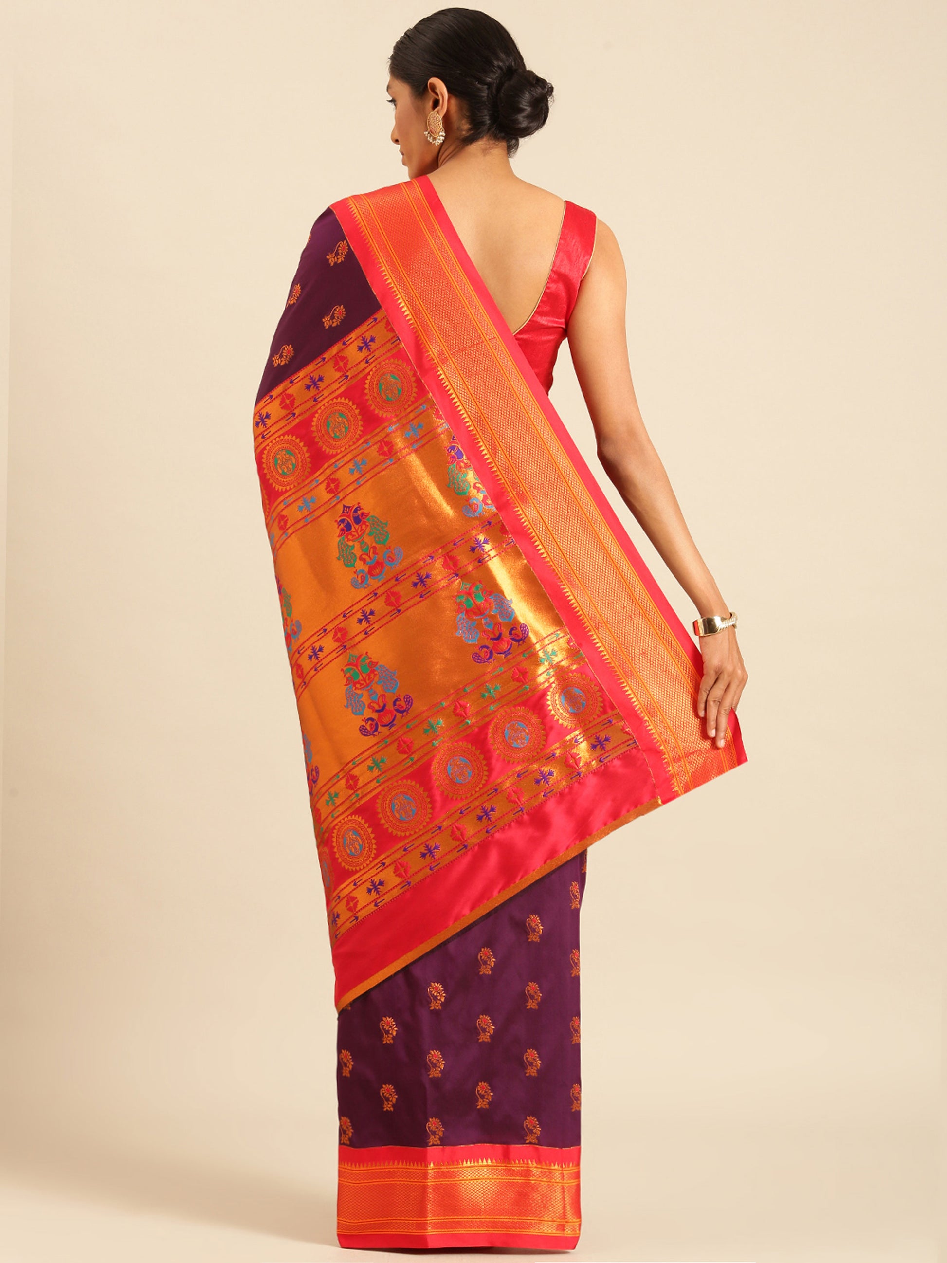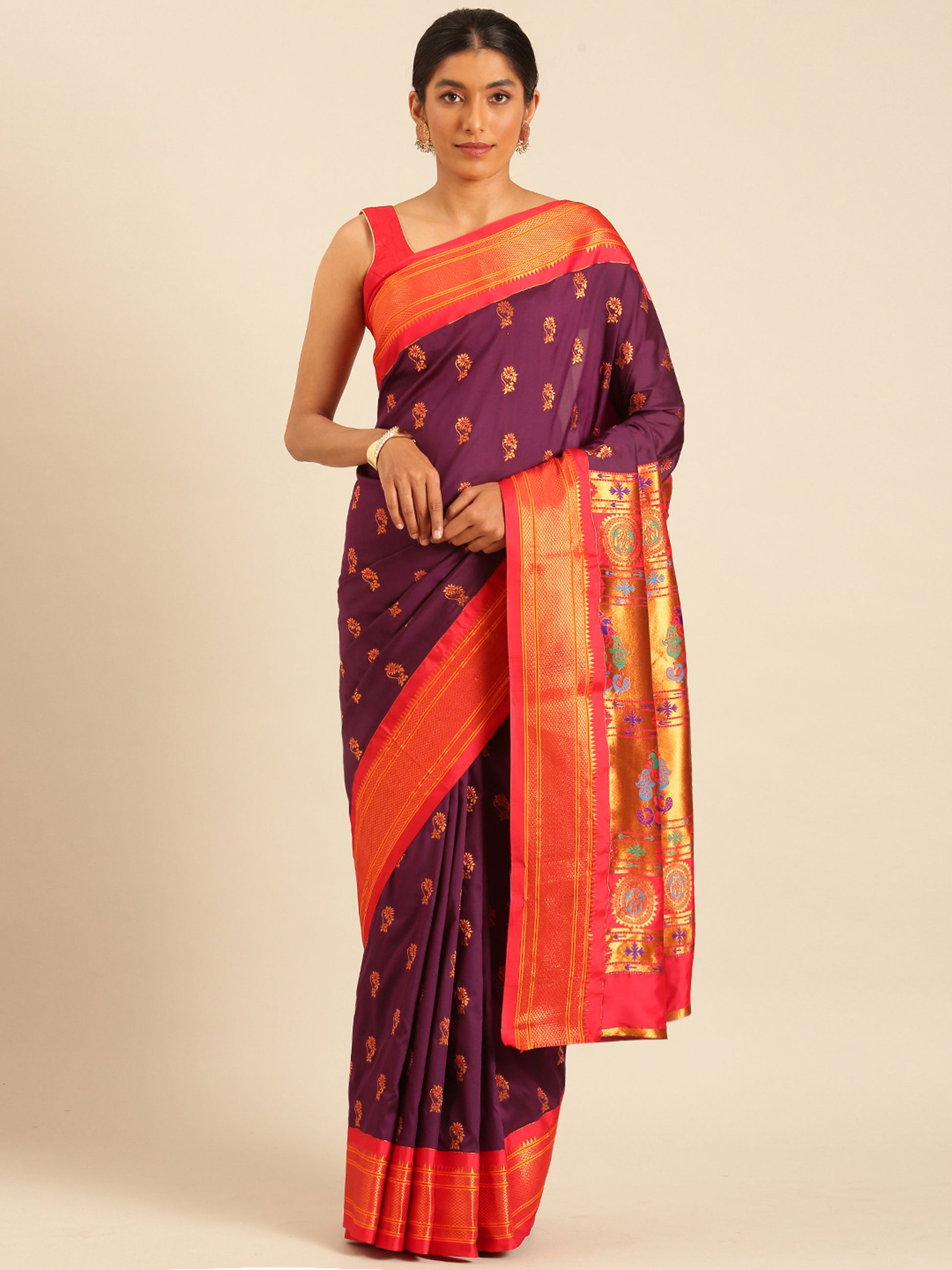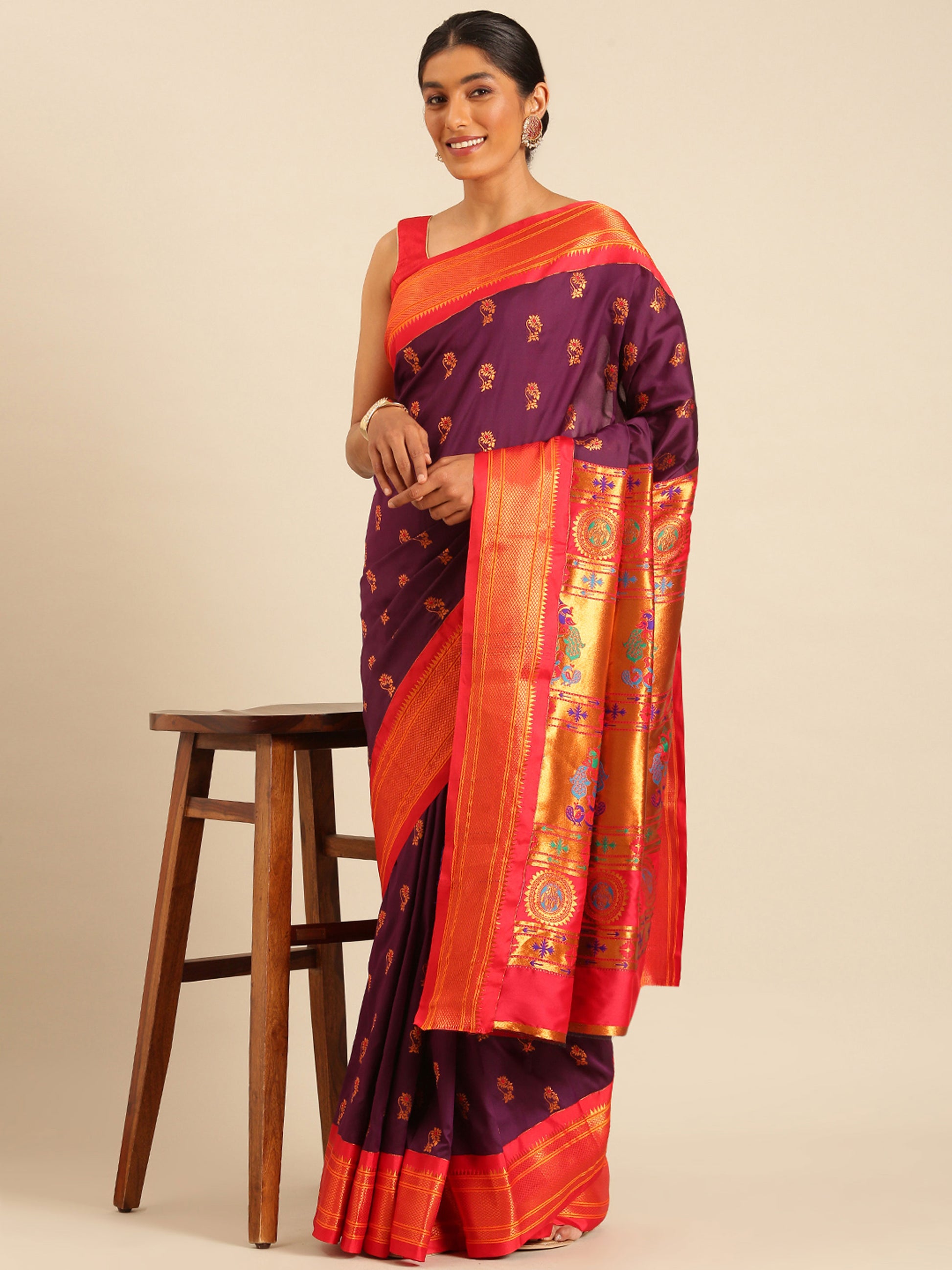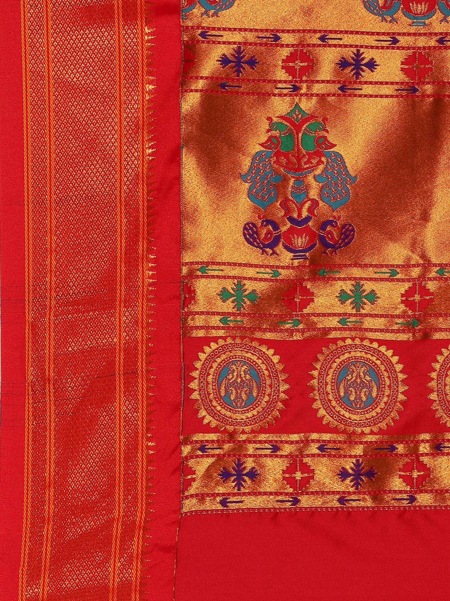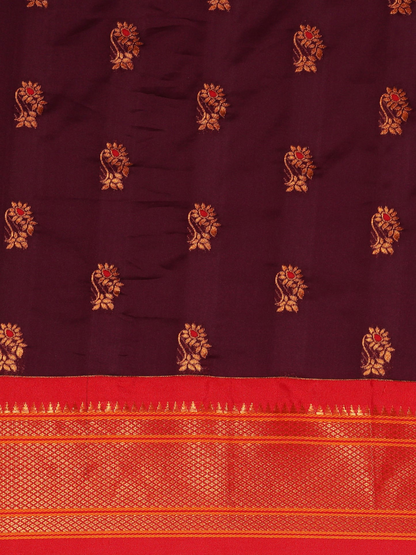 Ahilya Maroon & Red Soft Silk Peshwai Nath Paithani Saree