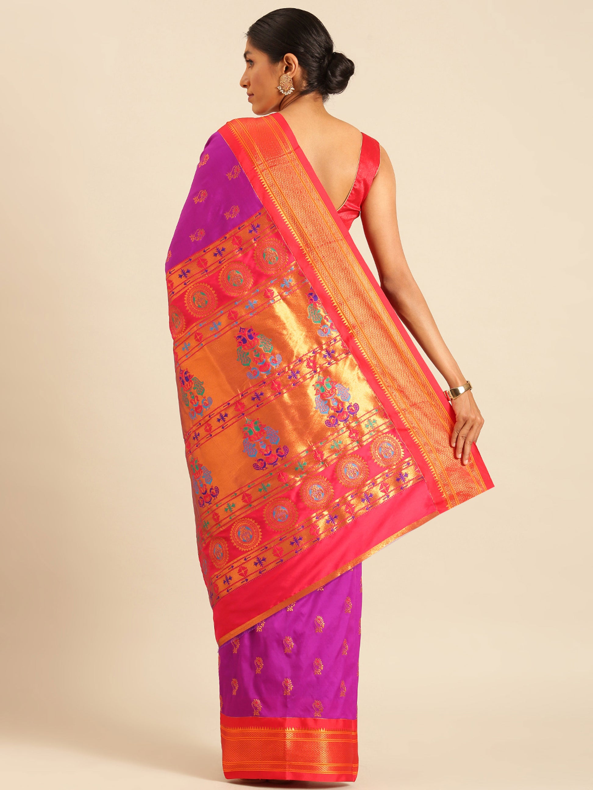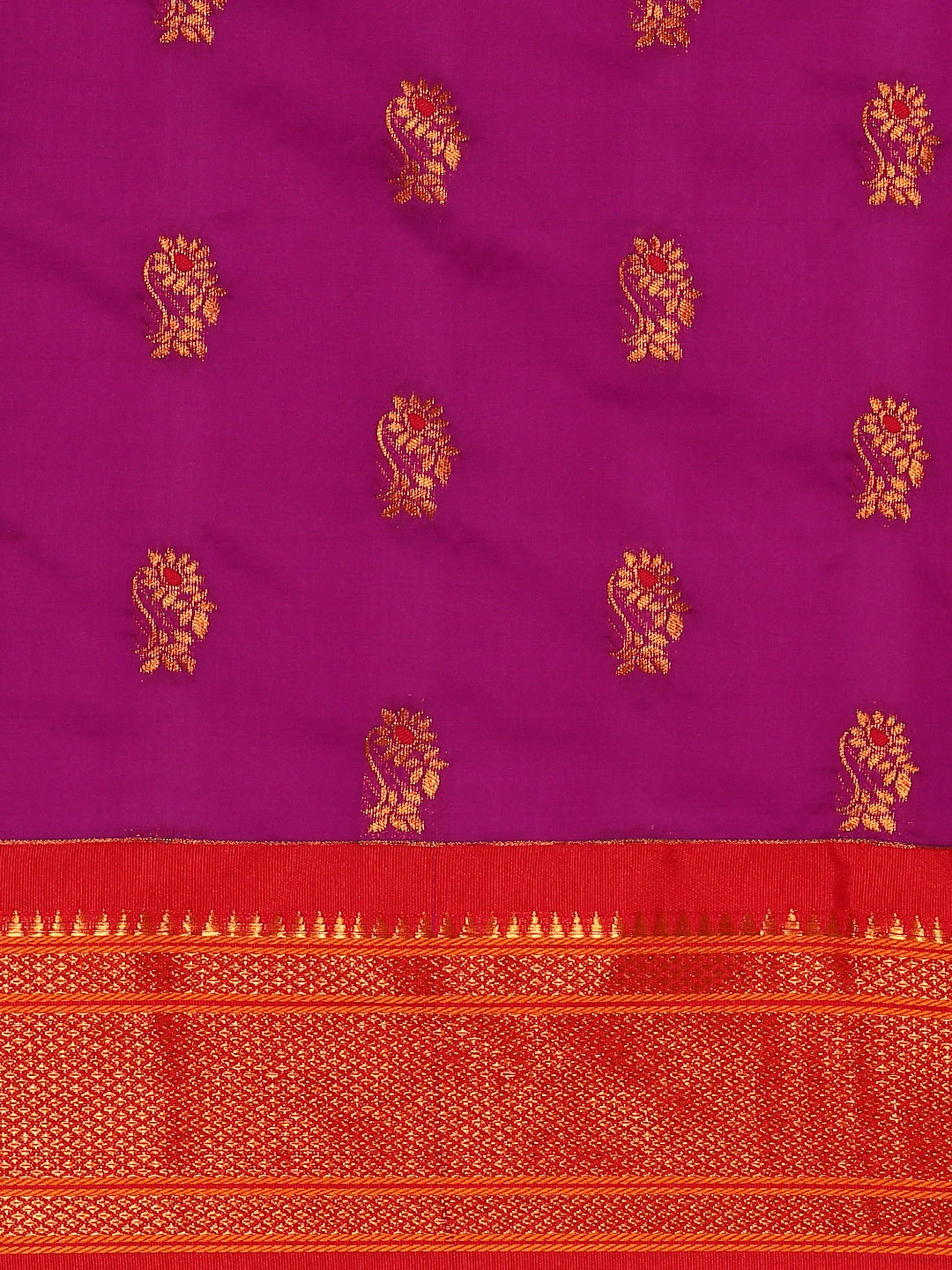 Ahilya Purple & Red Soft Silk Peshwai Nath Paithani Saree