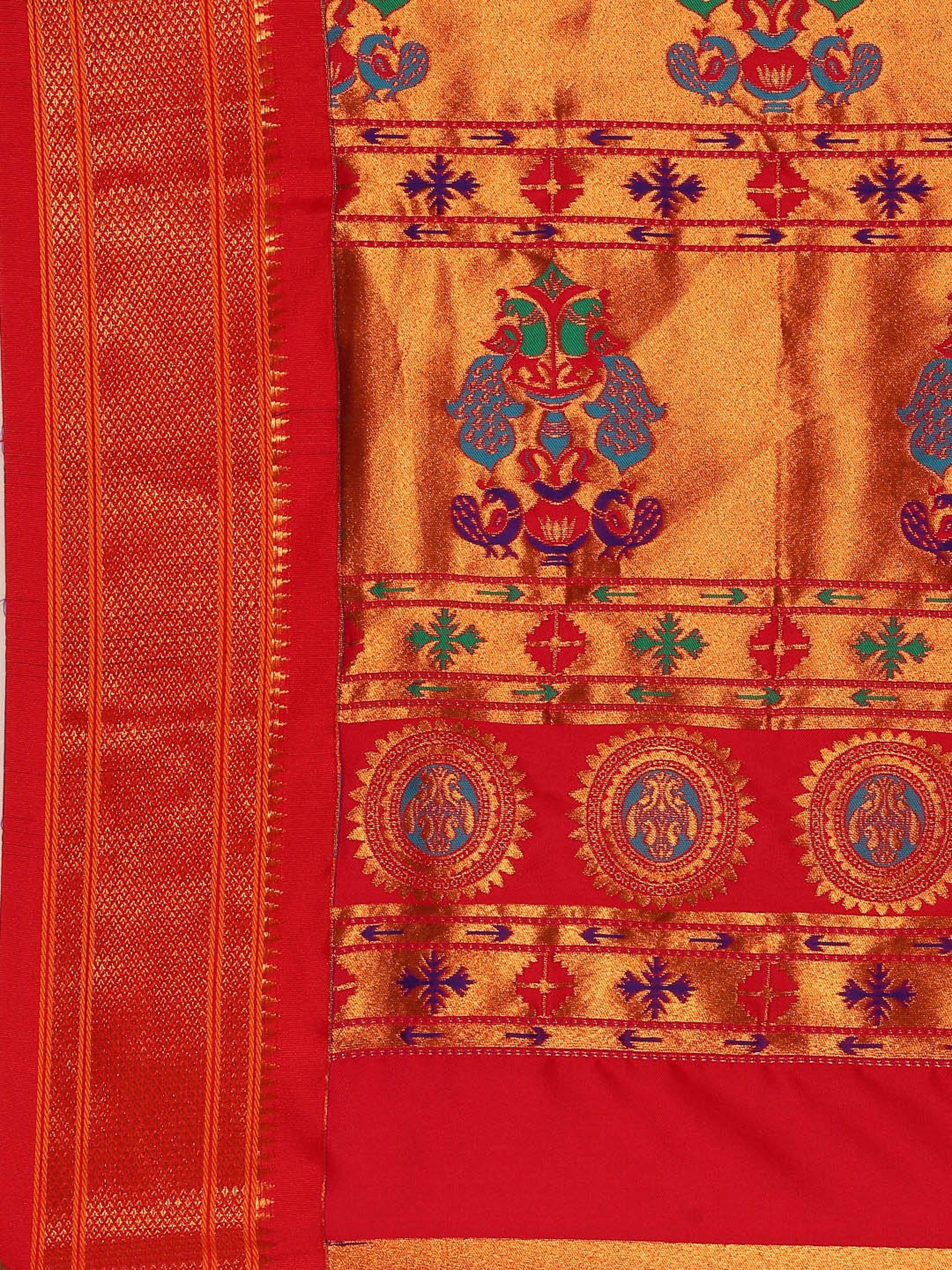 - Saree Work Type: Copper Zari Peshwai Nath Meena Butti