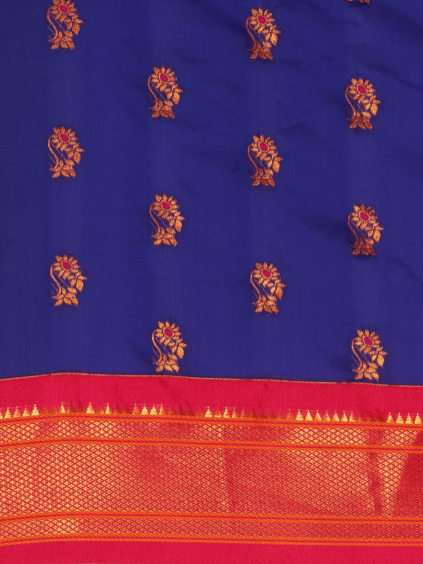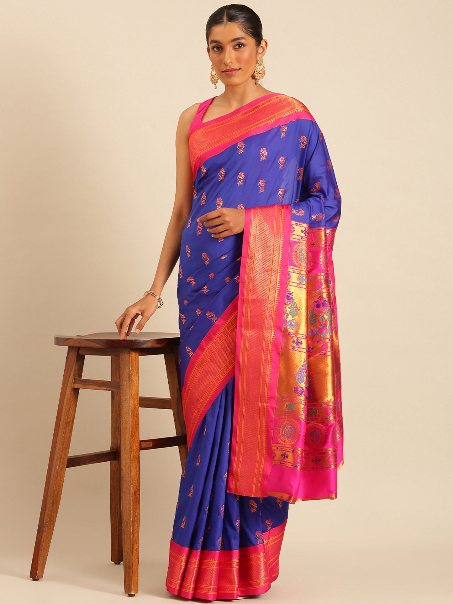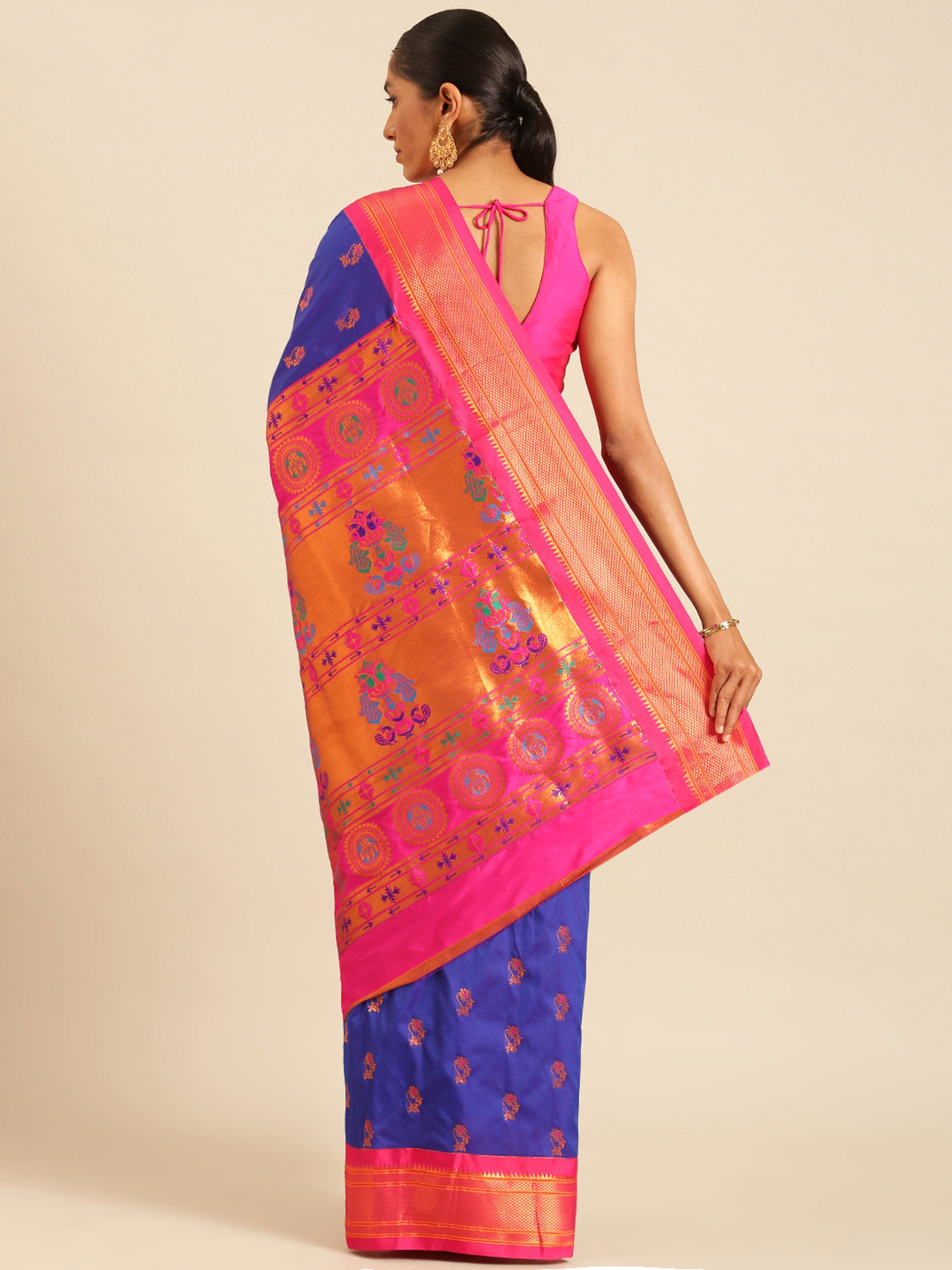 Ahilya Royal Blue & Pink Soft Silk Peshwai Nath Paithani Saree