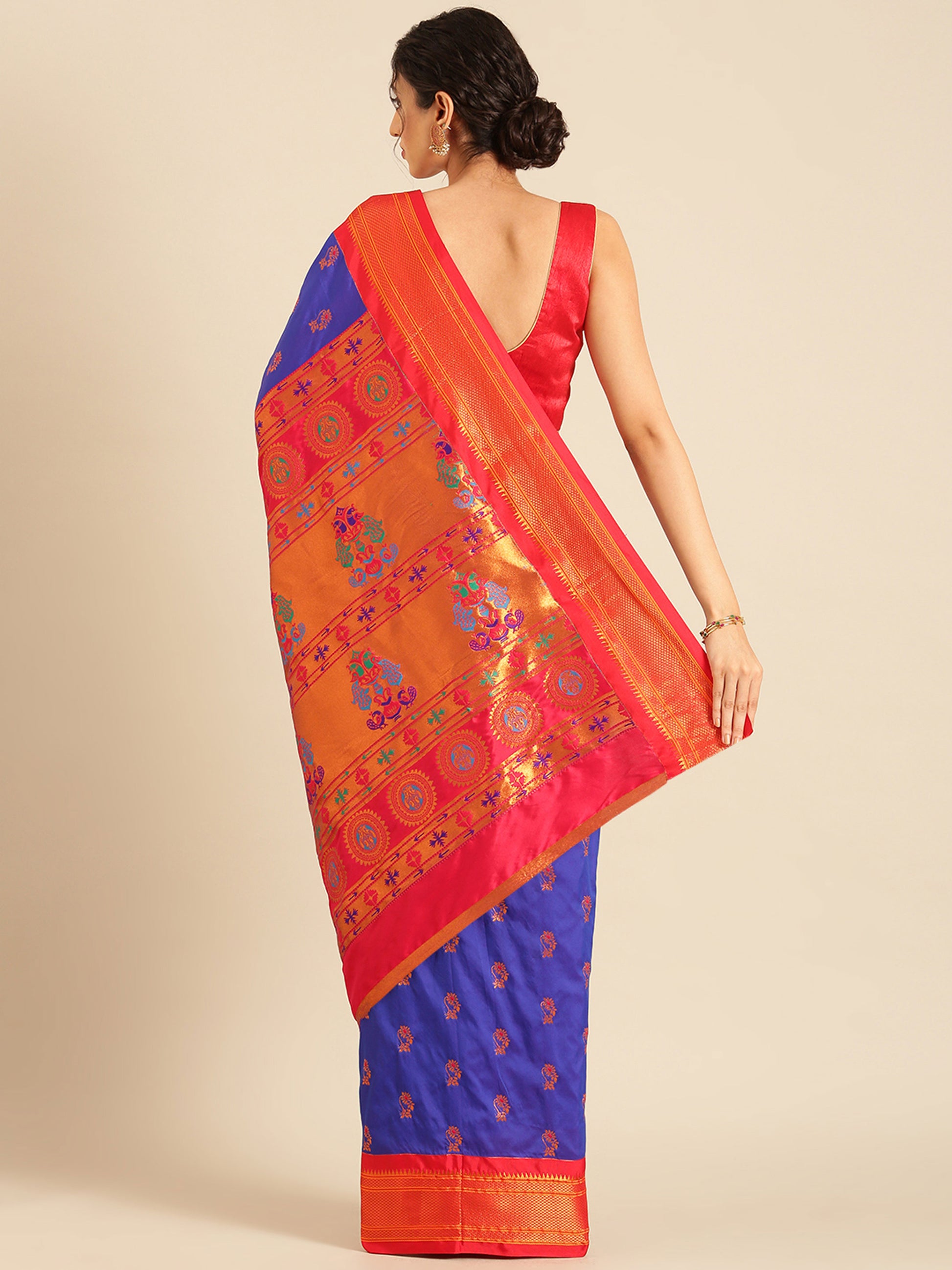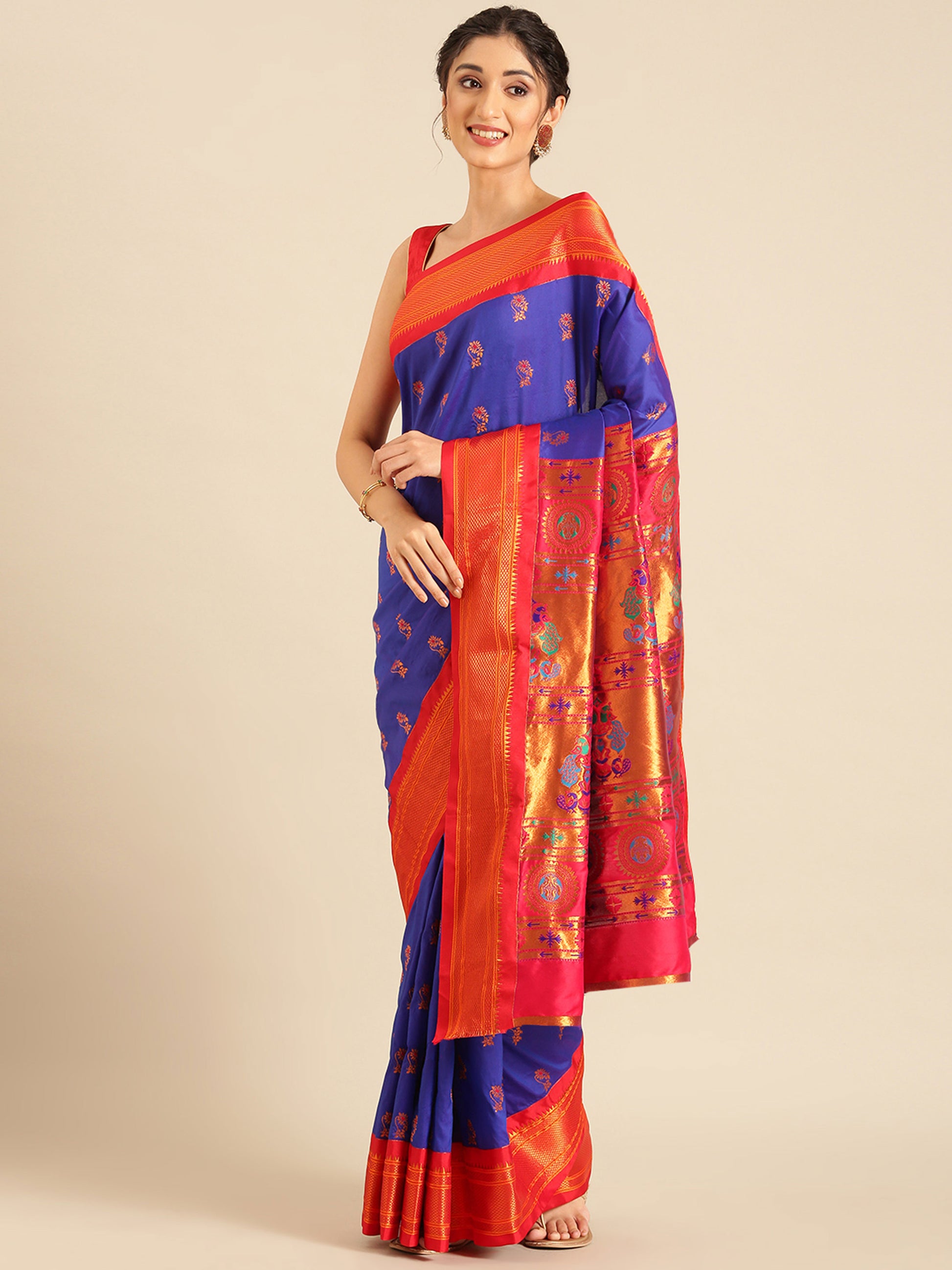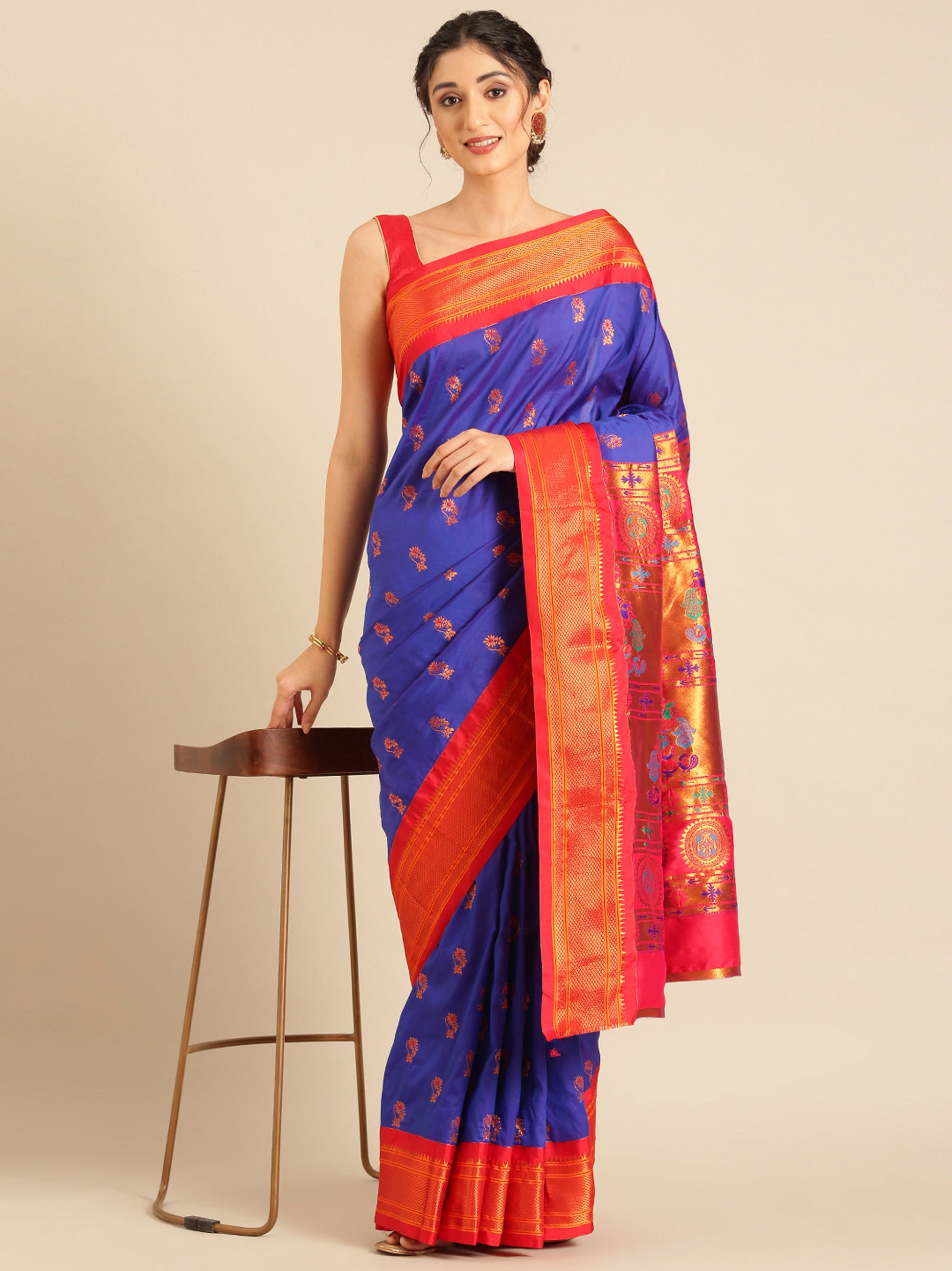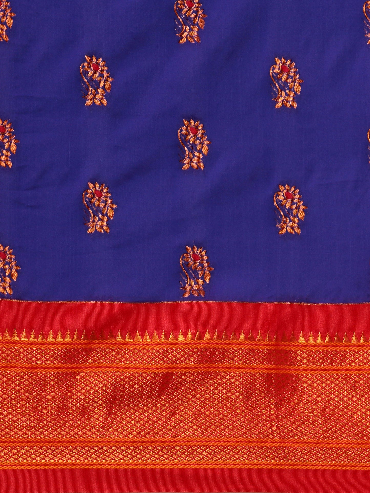 Ahilya Royal Blue & Red Soft Silk Peshwai Nath Paithani Saree