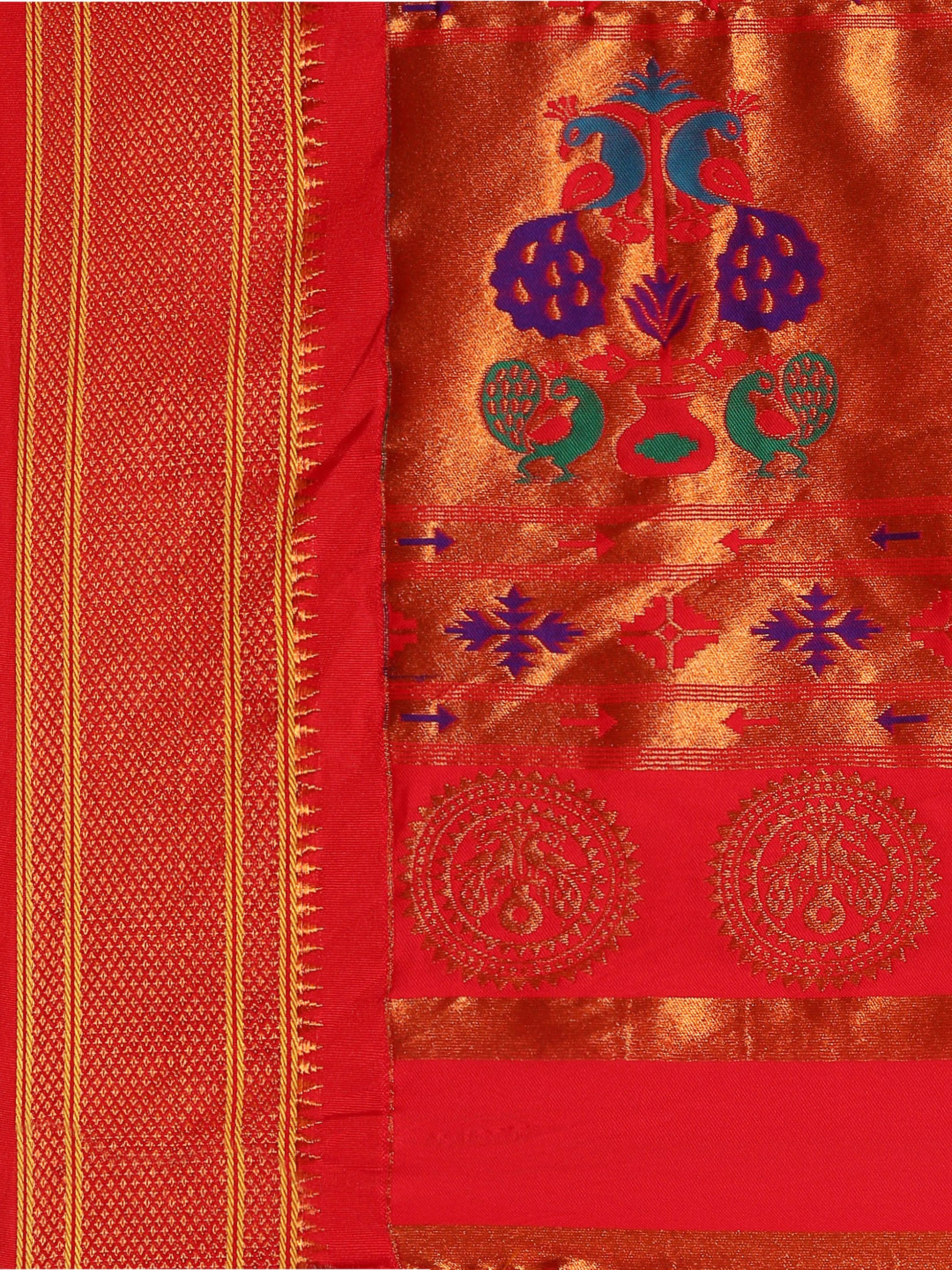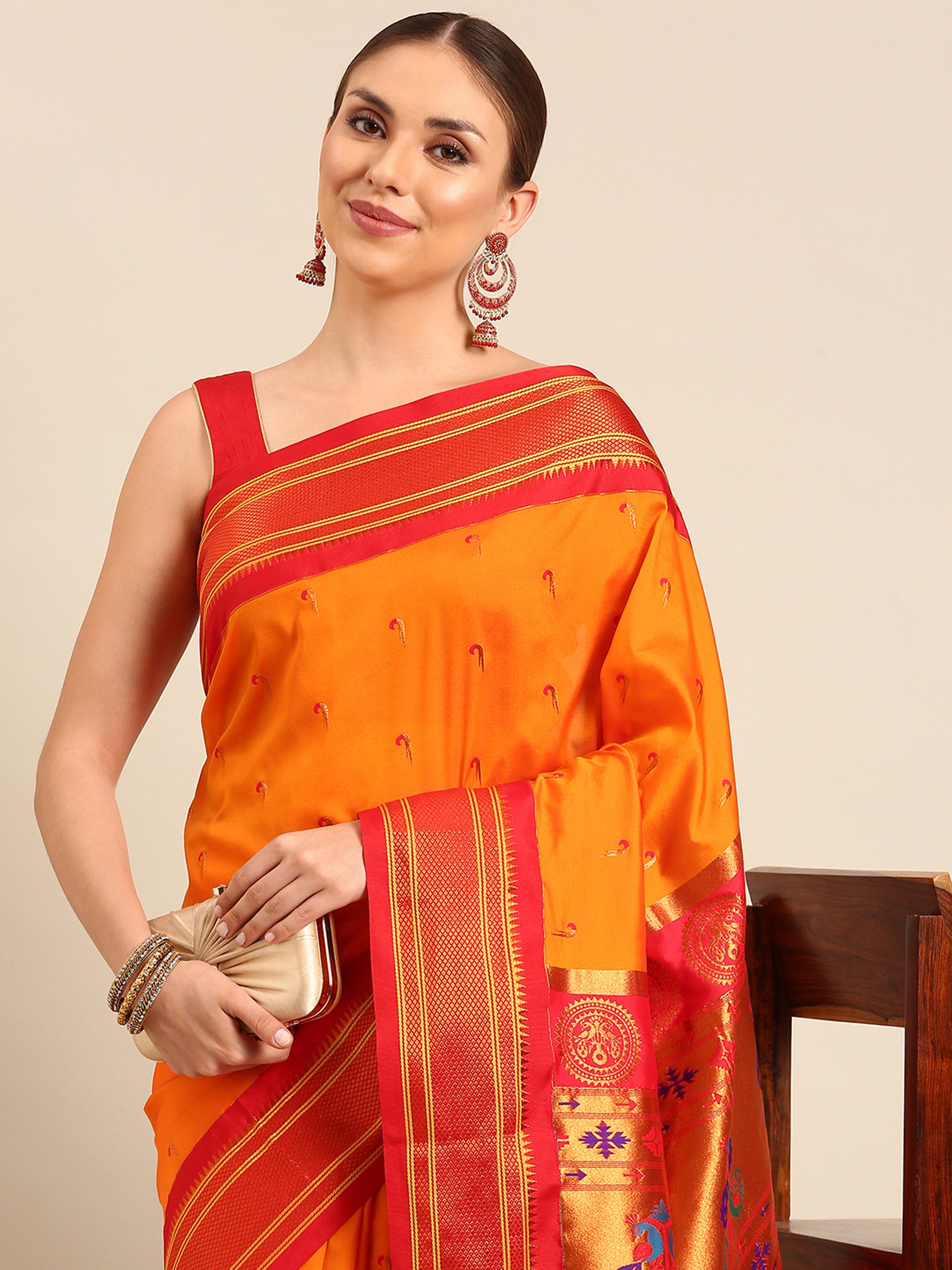 Amruta Mango Orange & Red Soft Silk Muniya Paithani Saree