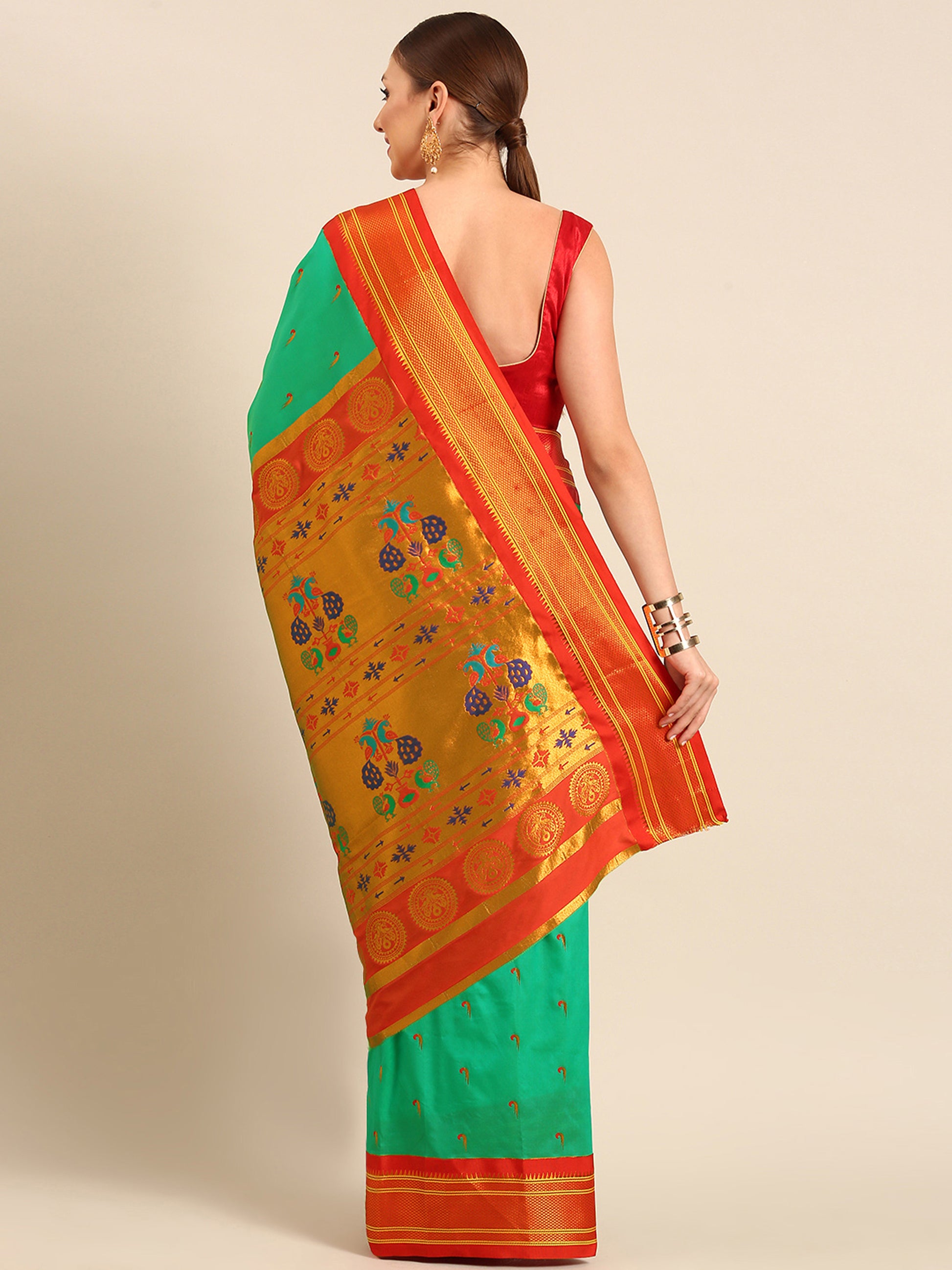 Amruta Sea Green & Red Soft Silk Muniya Paithani Saree