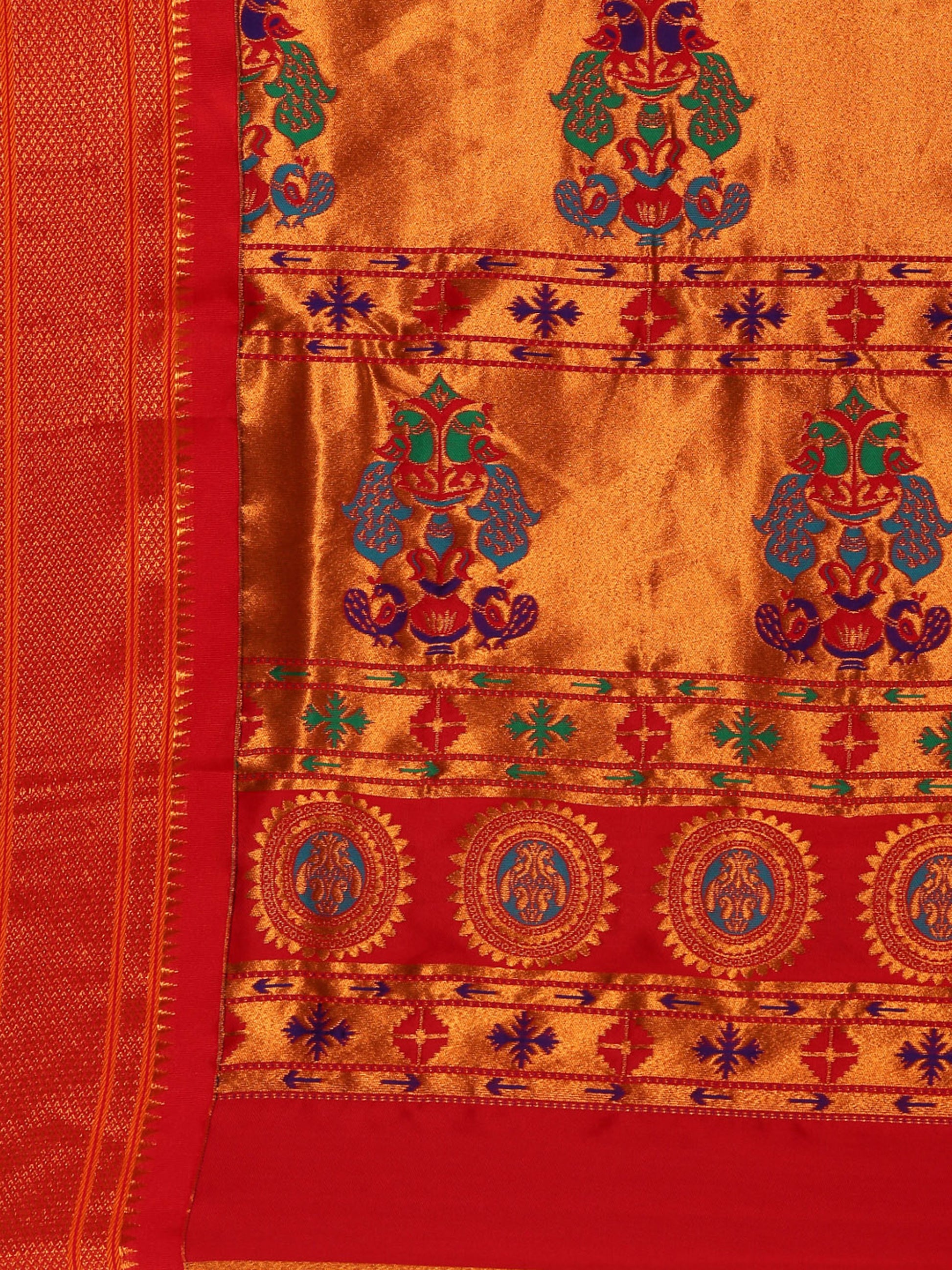 - Saree Work Type: Copper Zari Peshwai Nath Meena Butti