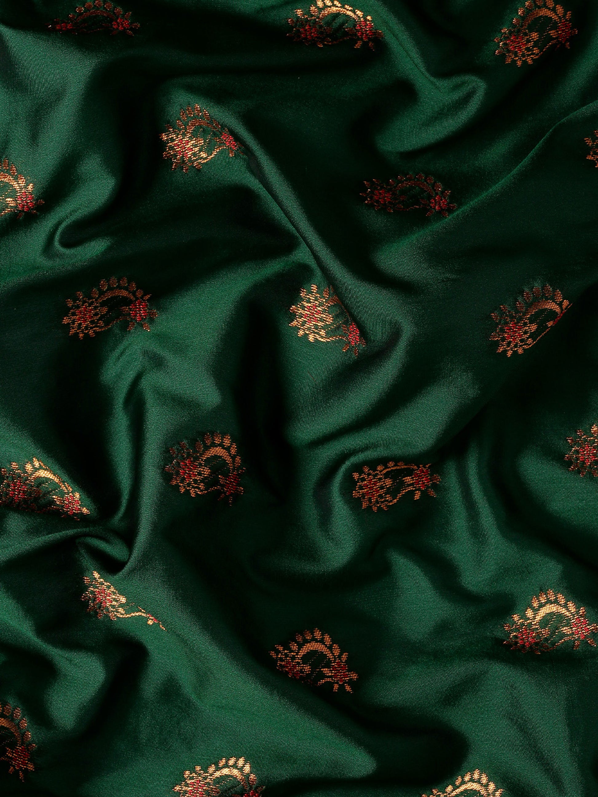 Explore The Collection Of Beautifully Designed Bottle Green & Red Soft Silk Peshwai Nath Paithani Saree With Blouse Piece From Varkala Silk Sarees On Amazon. Elevate Your Ethnic Wardrobe With The Exquisite Peshwai Nath Paithani Saree, A Timeless Masterpiece That Blends Tradition With Elegance. Crafted From Soft Silk Fabric With A Blend Of 70% Polyester And 30% Silk, This Saree Offers A Luxurious Drape And A Subtle Sheen, Perfect For Grand Occasions. Measuring 5.5 Meters With A 0.8-Meter Blouse Piece, It Features A Copper Zari Woven Intricate Checks Kadiyal Border That Exudes Grace. The Body Is Adorned With Copper Zari Peshwai Nath Meena Butti, While The Pallu Showcases Rich Copper Zari Woven Peacock Motifs, Symbolizing Prosperity. Enhanced With Zari And Multicolor Resham Silk Thread Embellishments, This Woven Kadiyal Paithani Saree Is Ideal For Weddings, Parties, And Festivals. Pair It With Traditional Jewelry For A Regal Look. Dry Clean For The First Wash, Followed By Gentle Hand Wash. Redefine Your Style With This Heritage-Rich Saree, A Perfect Blend Of Culture And Sophistication.