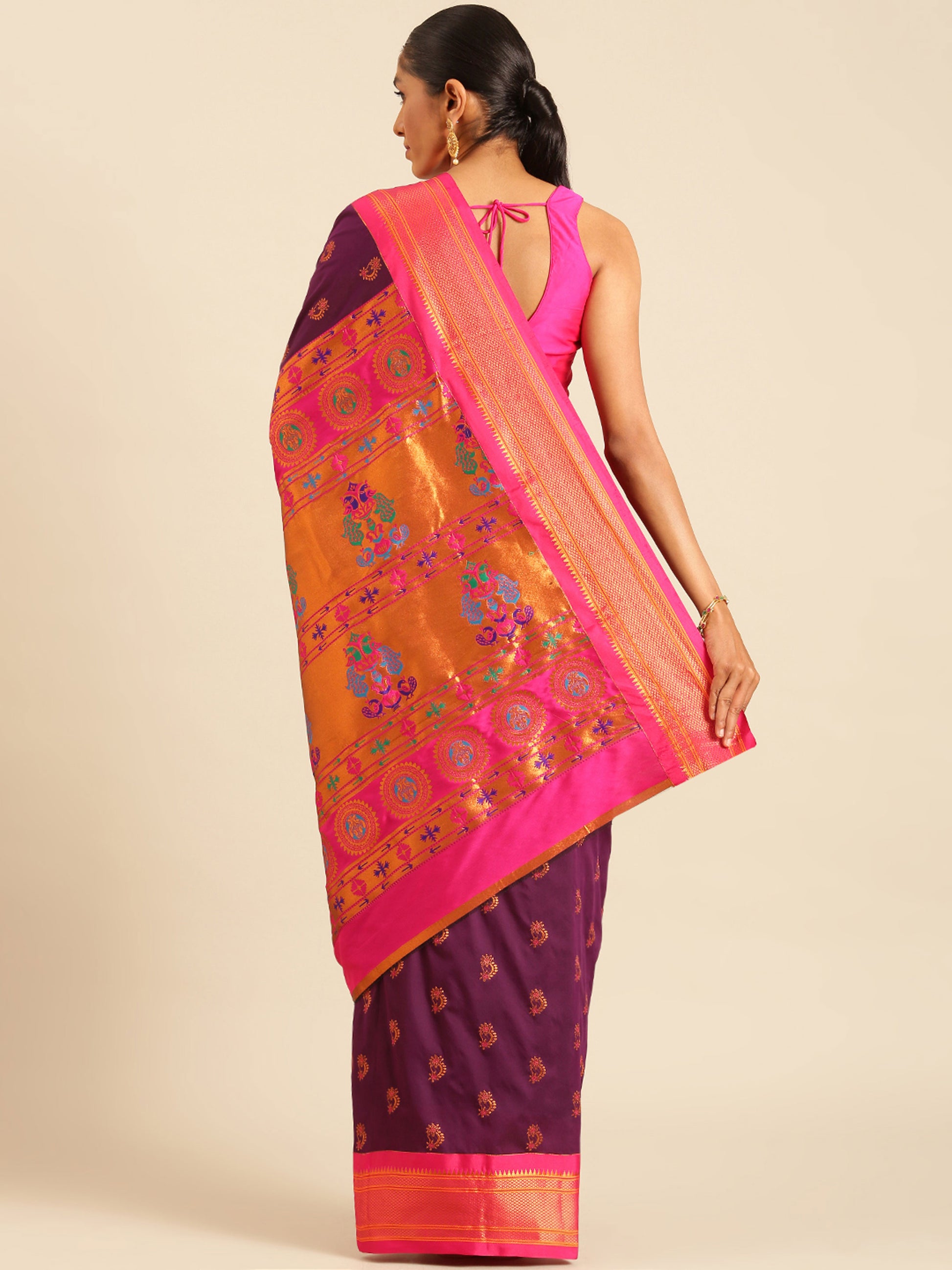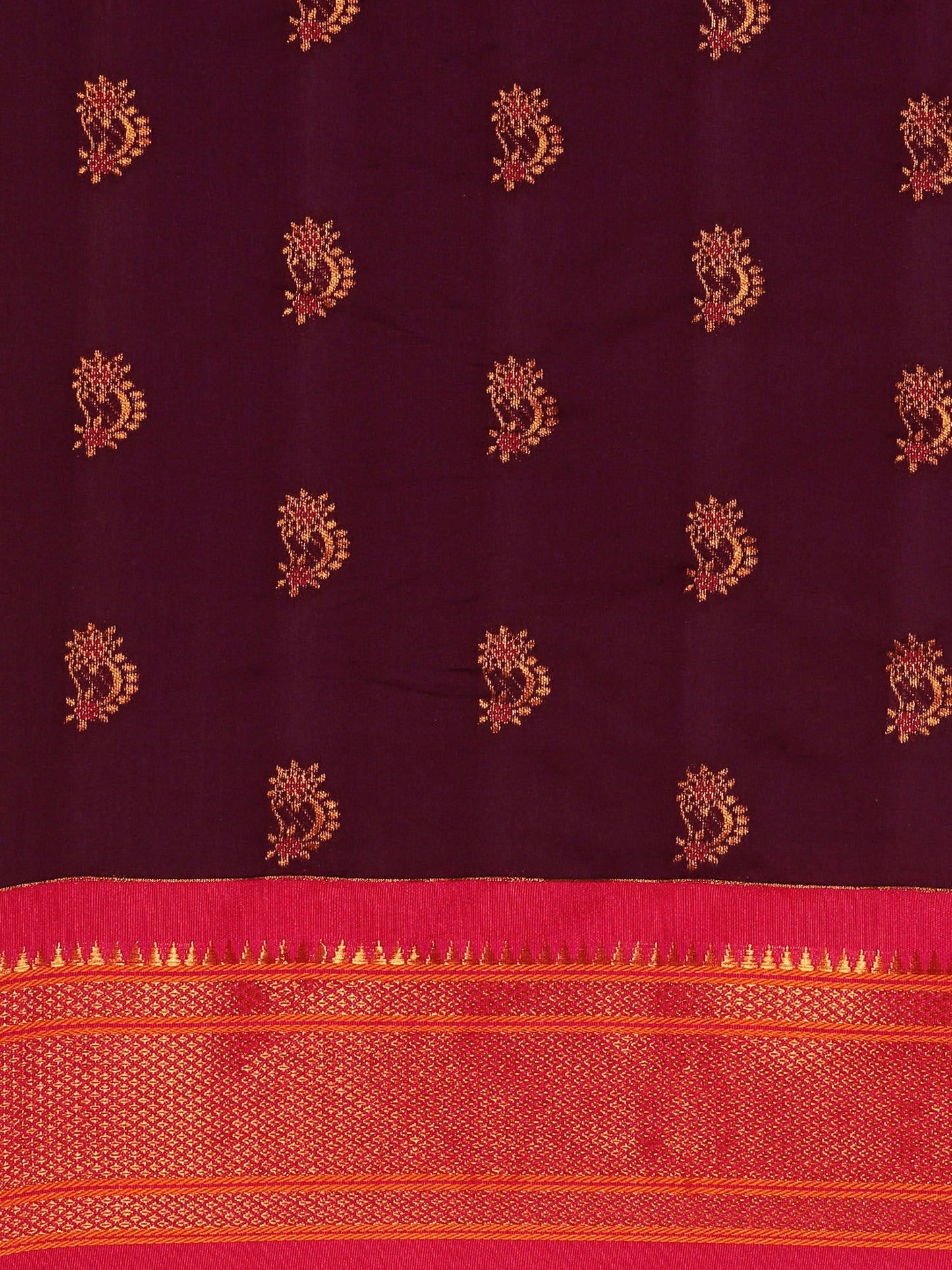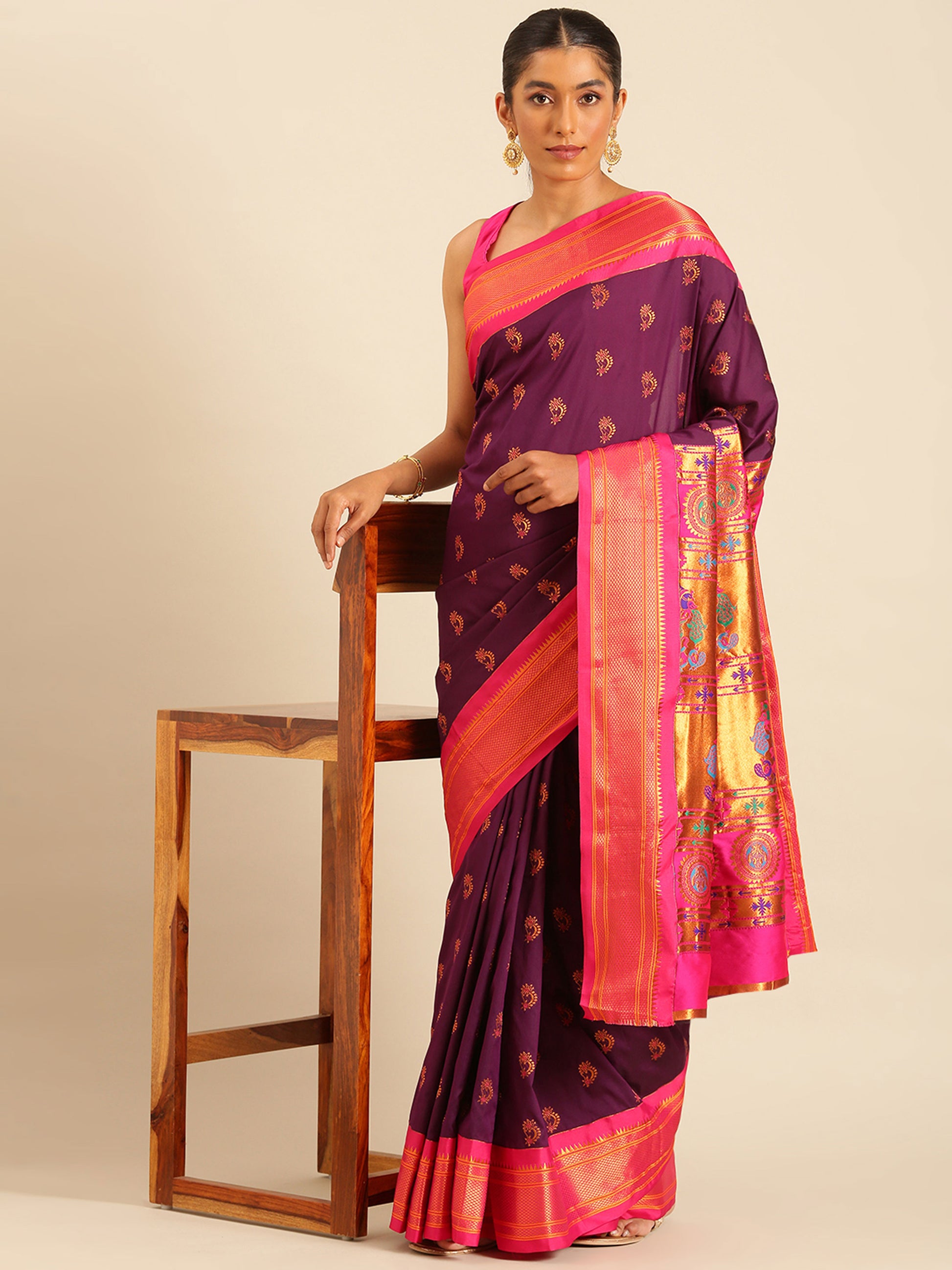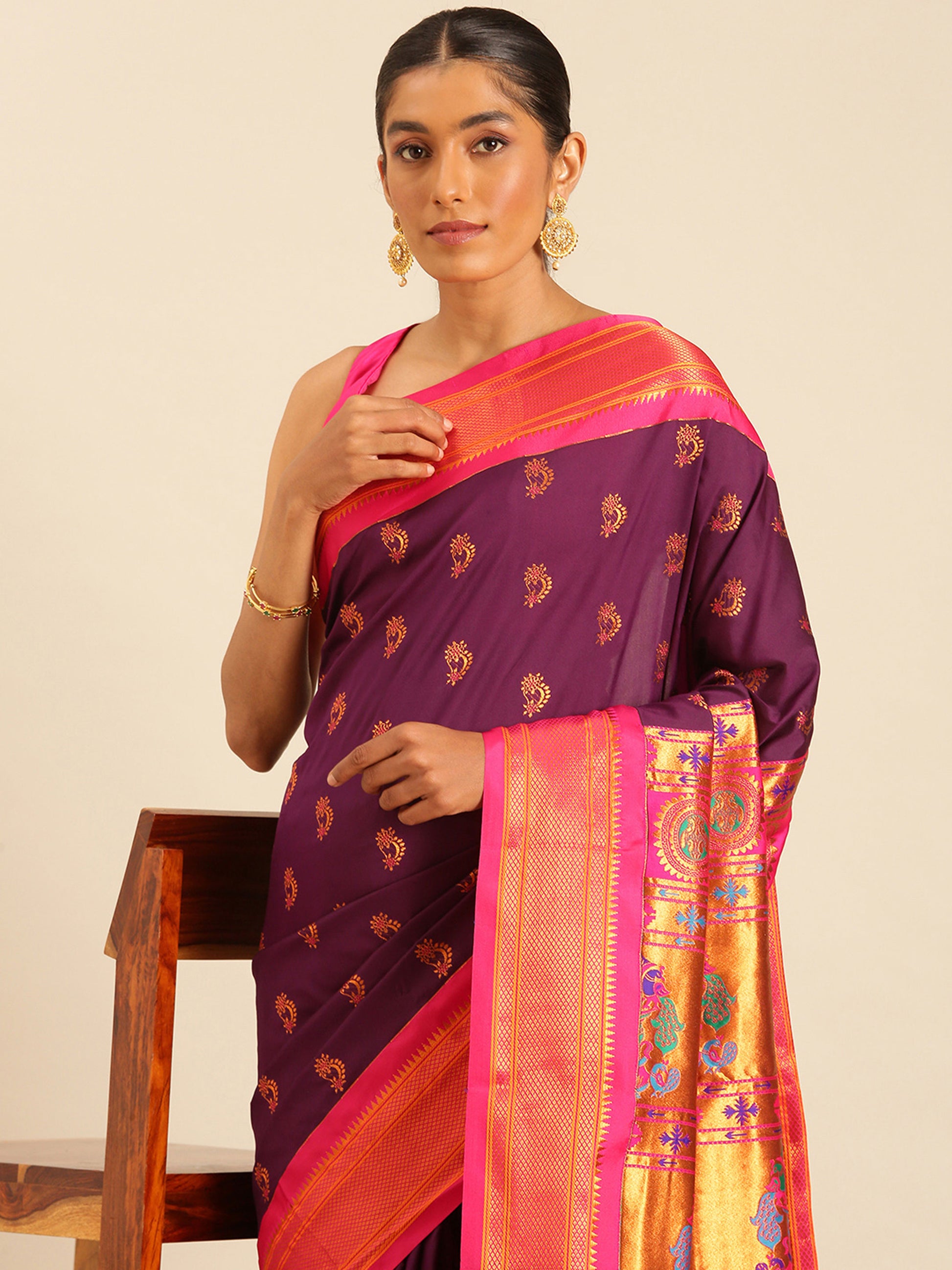 Baanai Maroon & Pink Soft Silk Peshwai Nath Paithani Saree