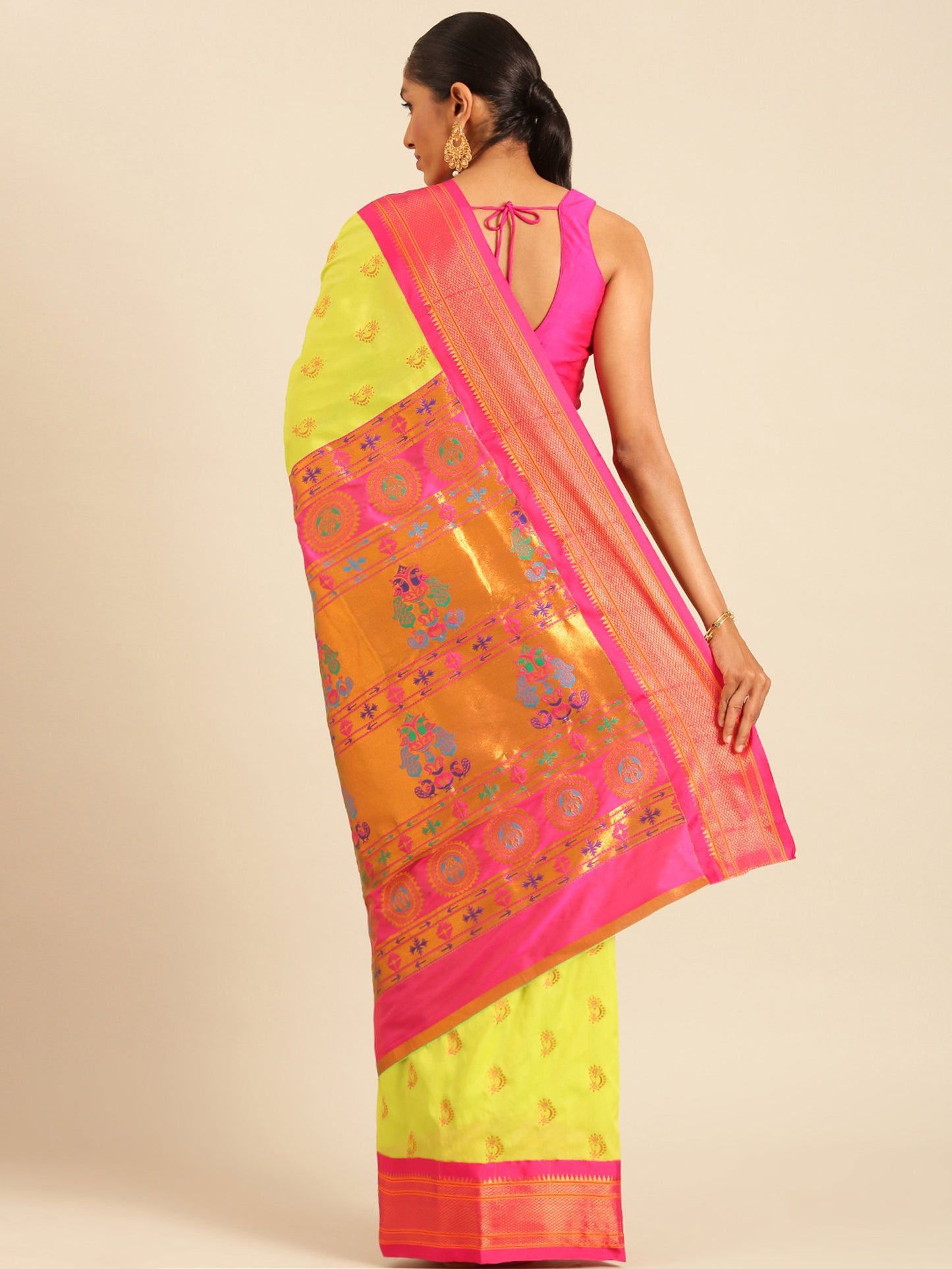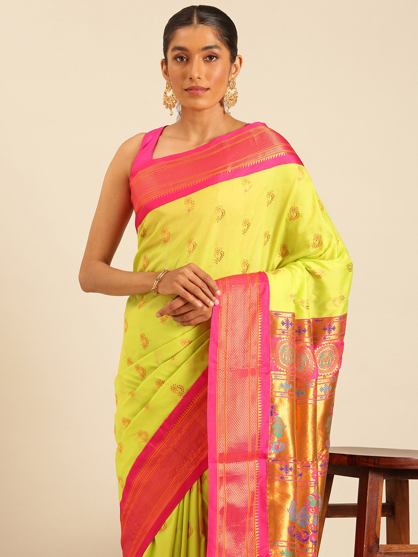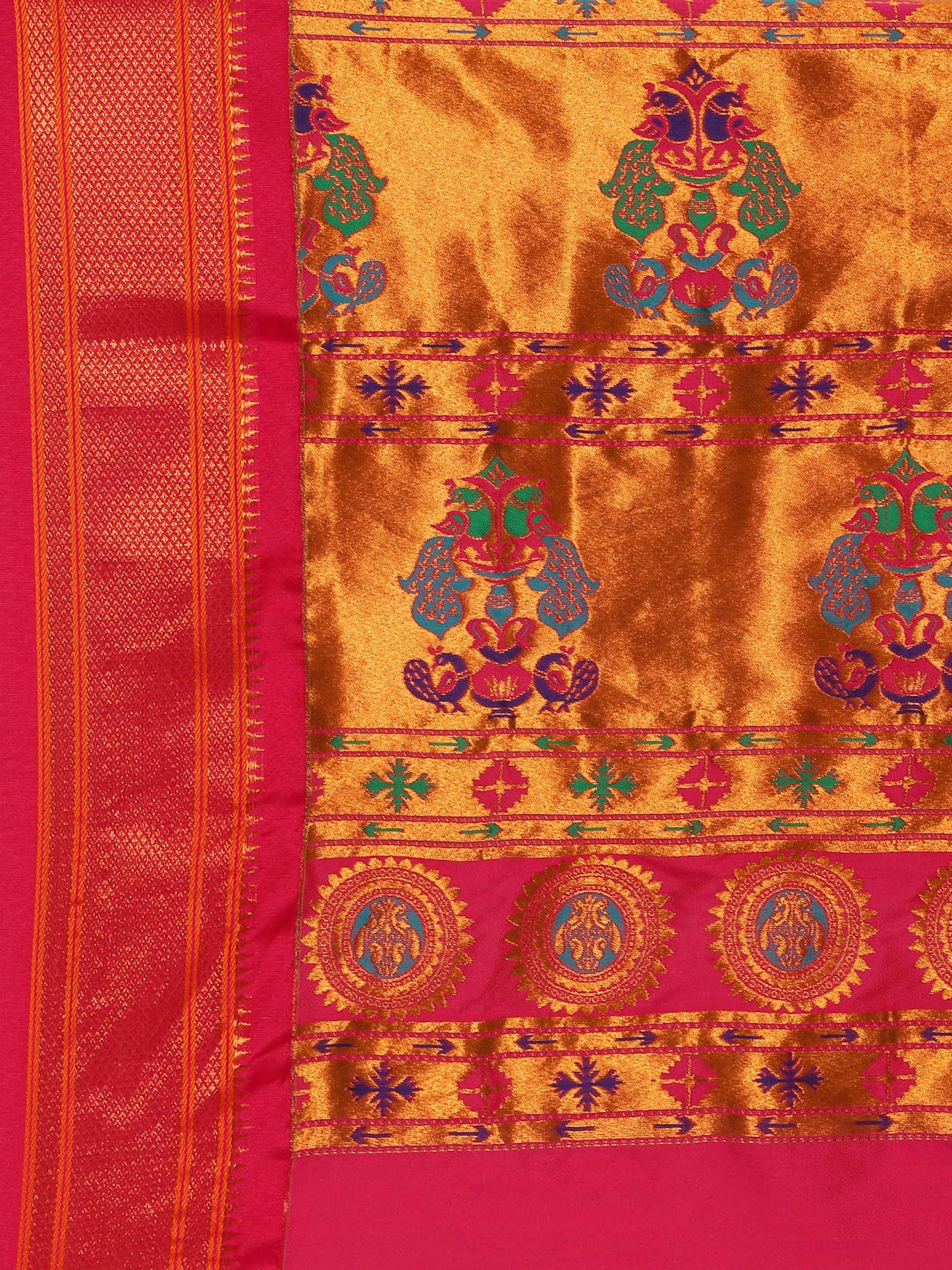 Baanai Popati & Pink Soft Silk Peshwai Nath Paithani Saree