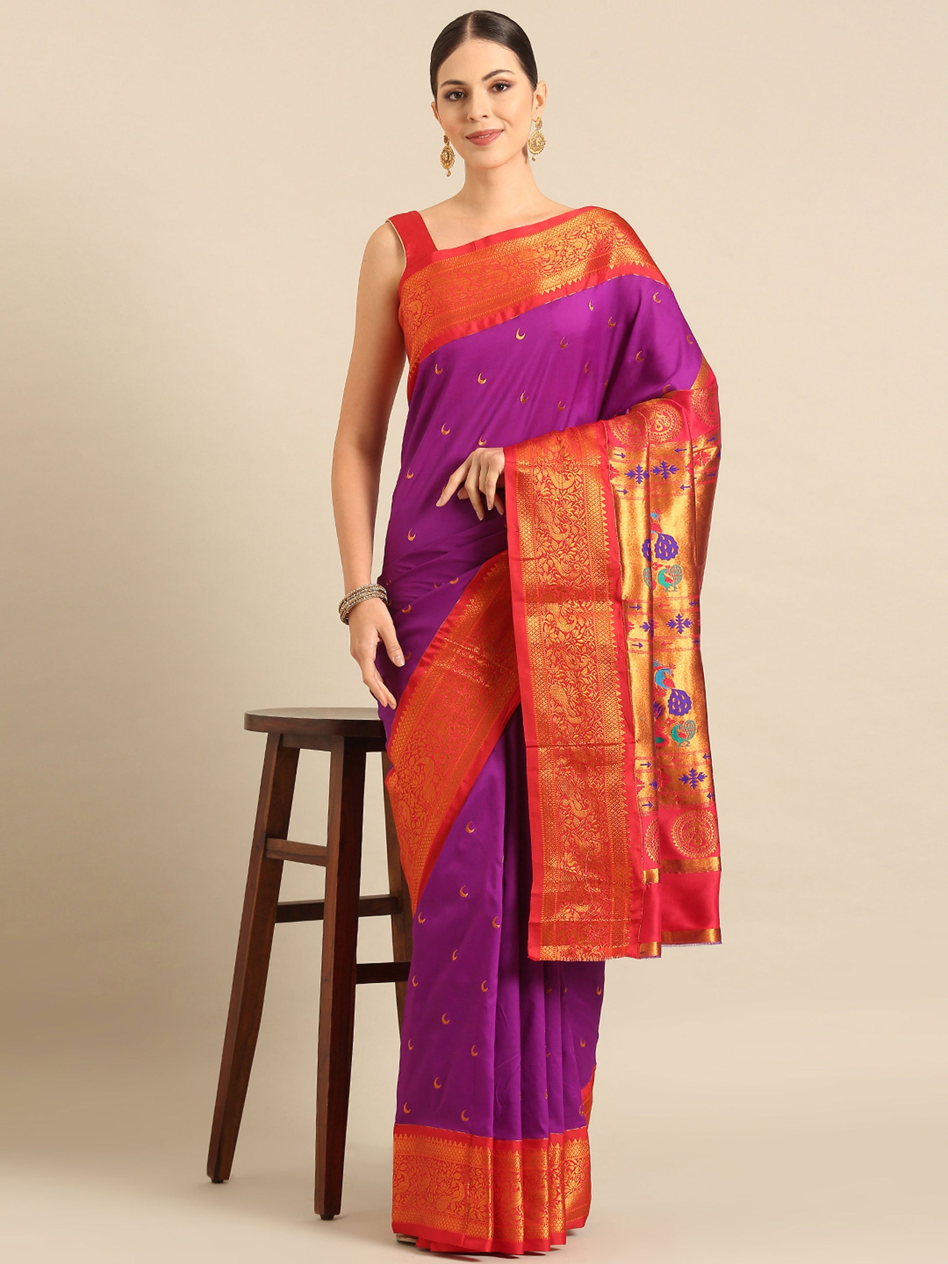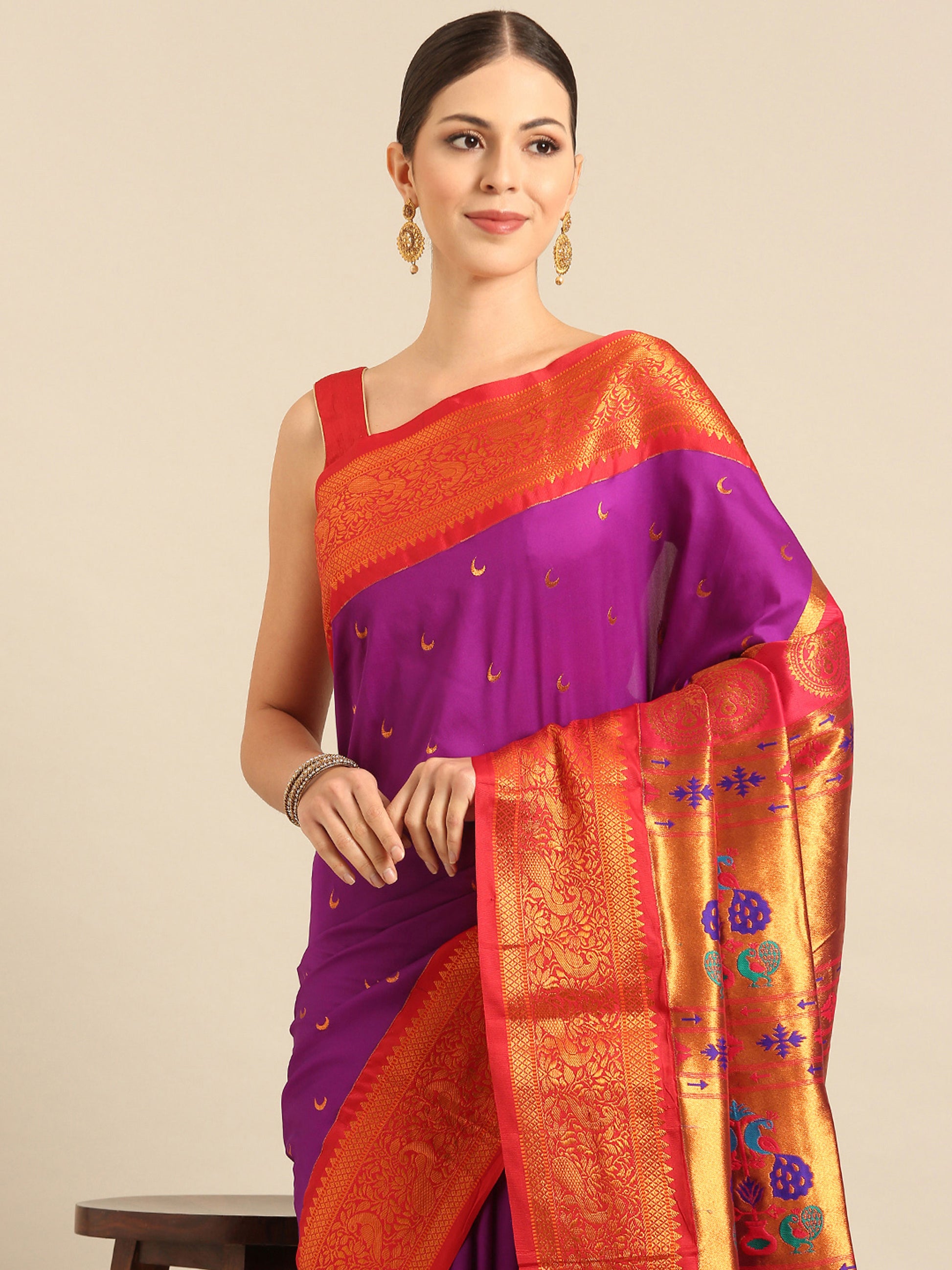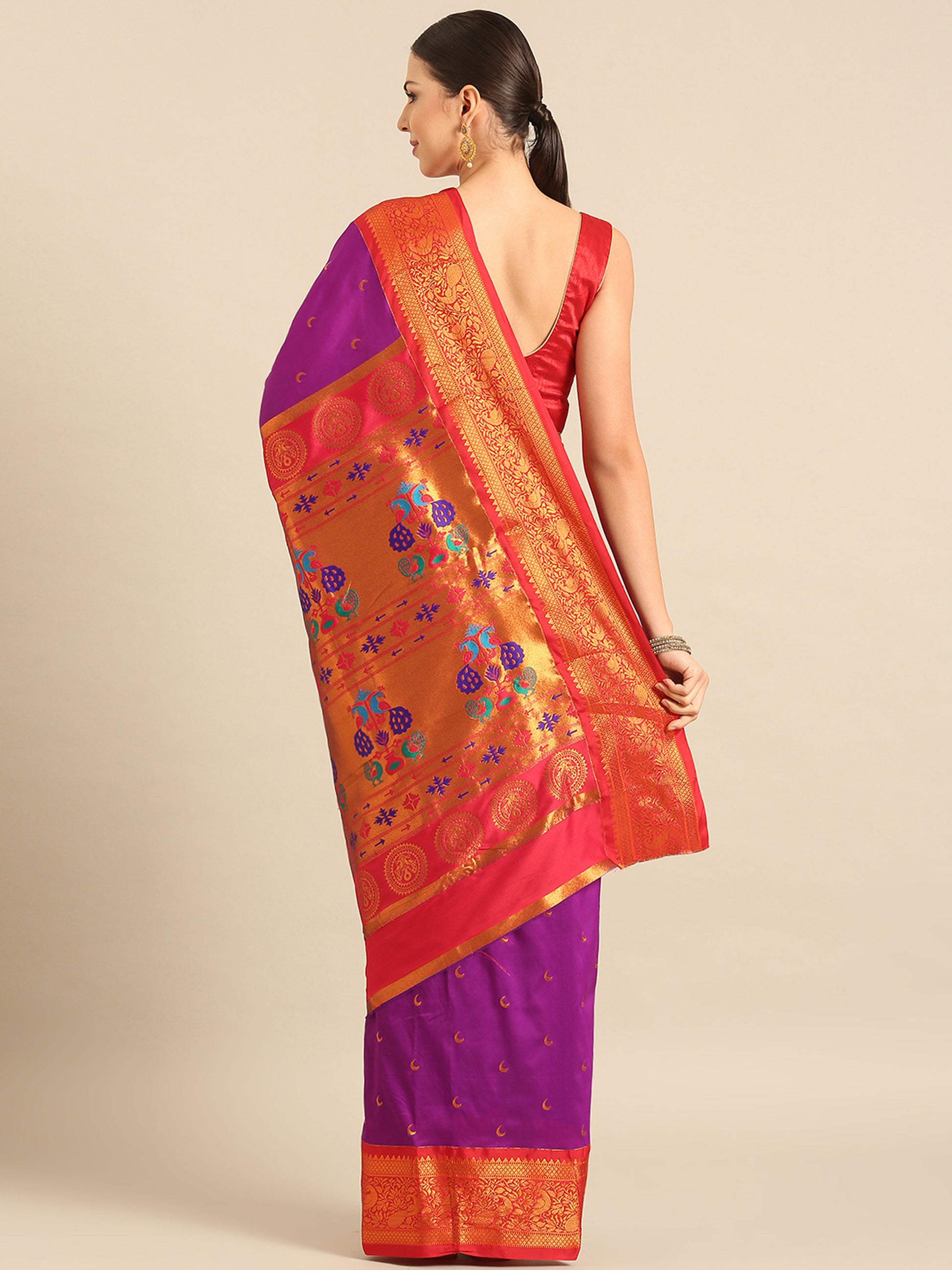 Chandani Purple & Red Soft Silk Chandrakor Paithani Saree