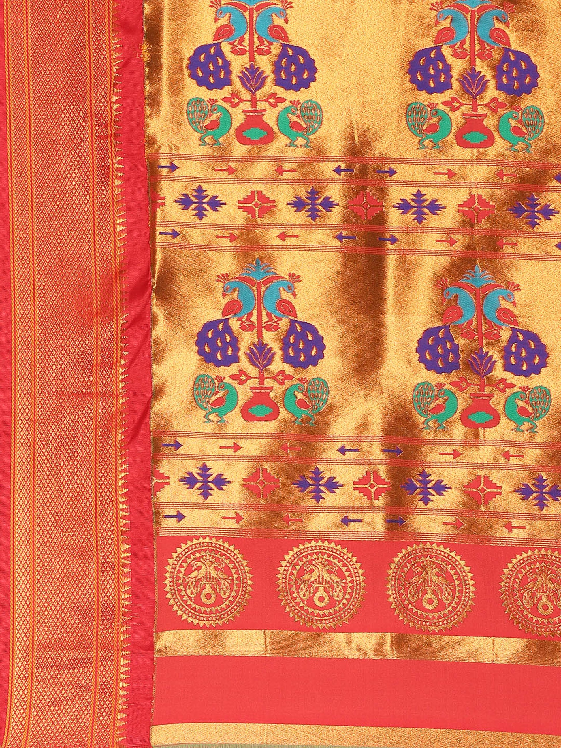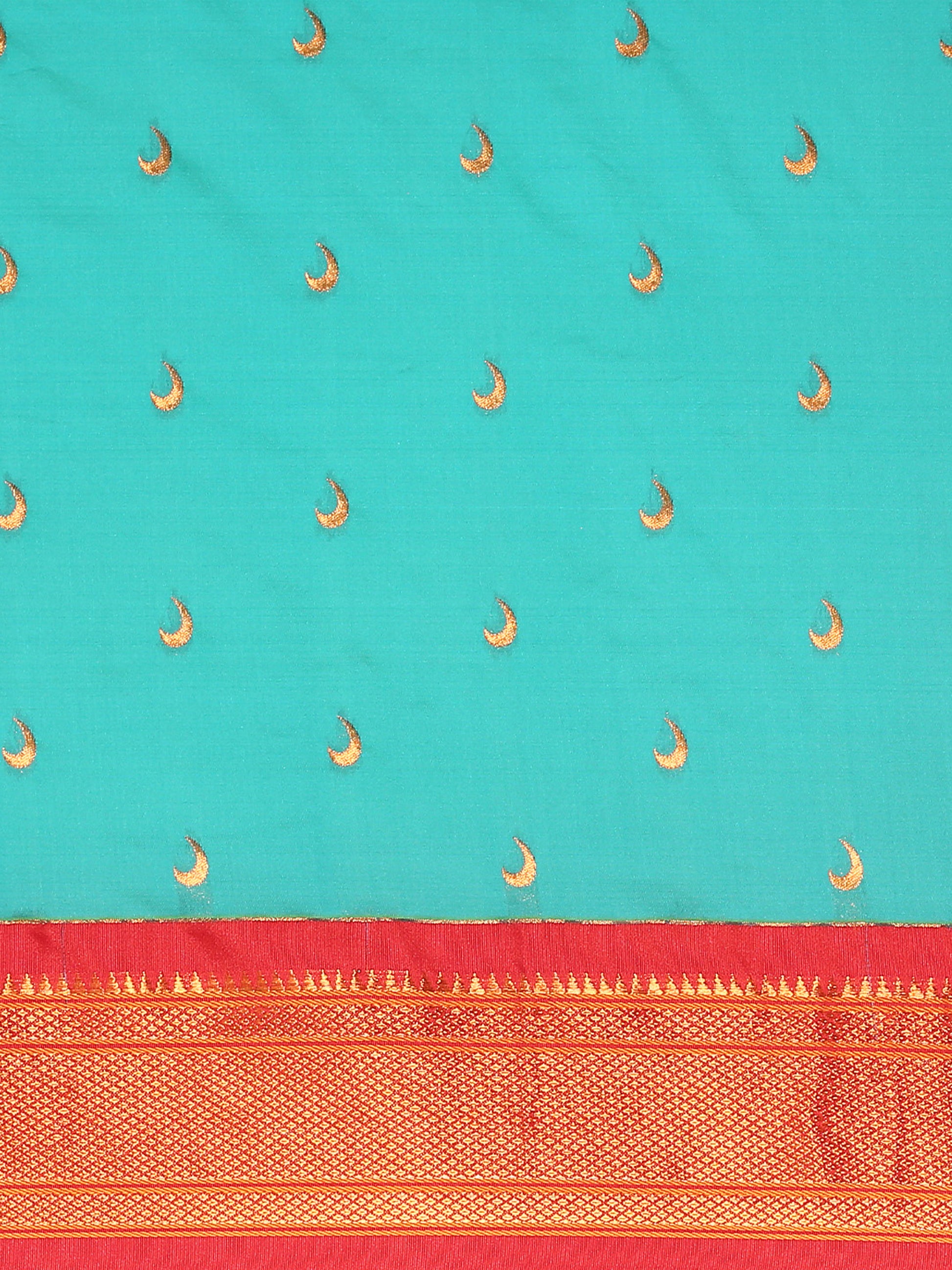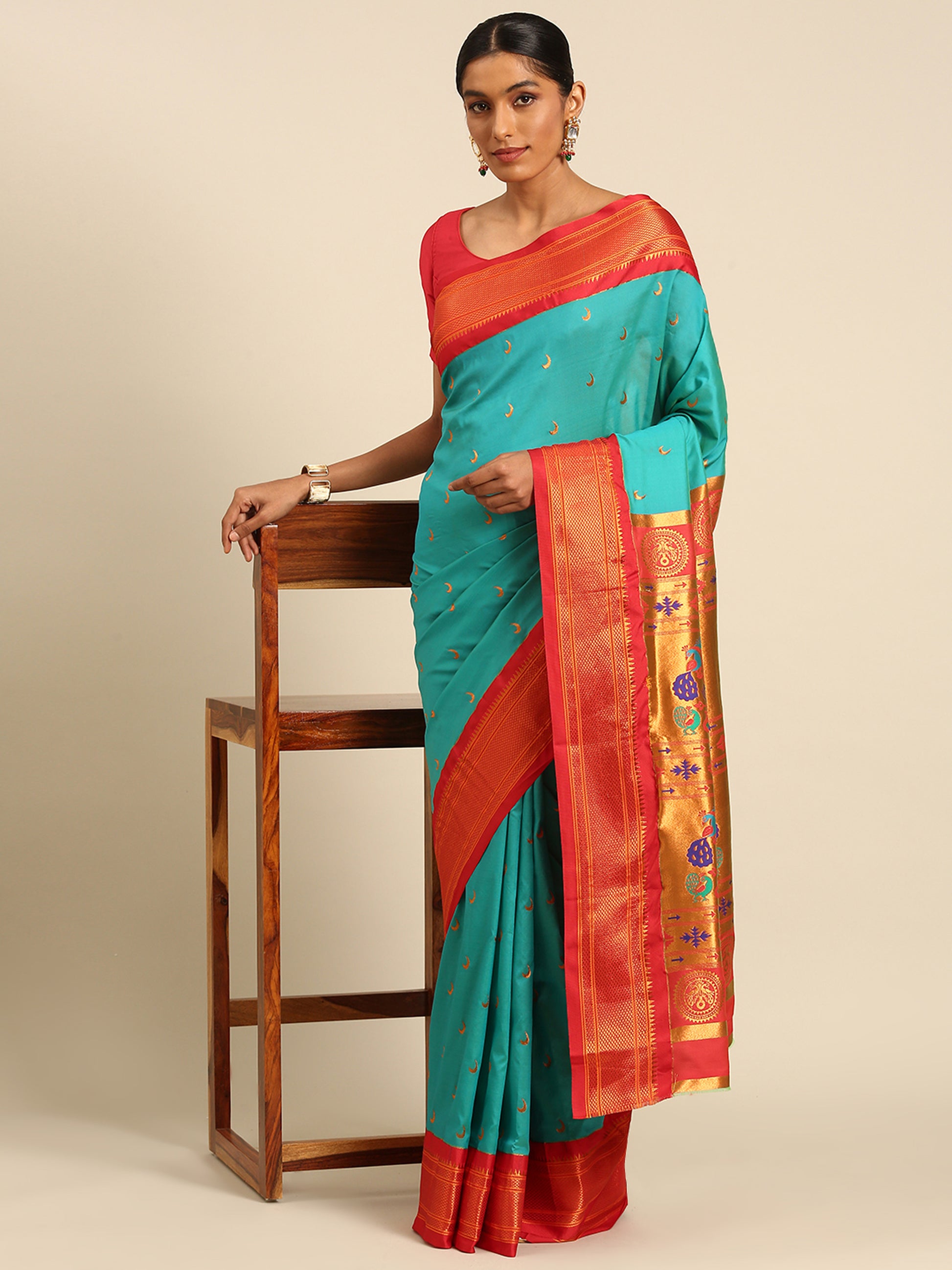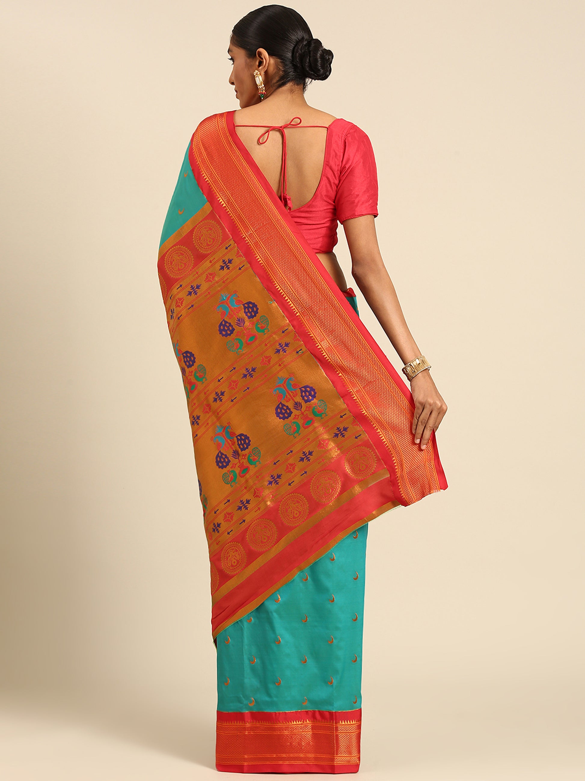 Chandrkala Chintamani Blue & Red Soft Silk Chandrakor Paithani Saree